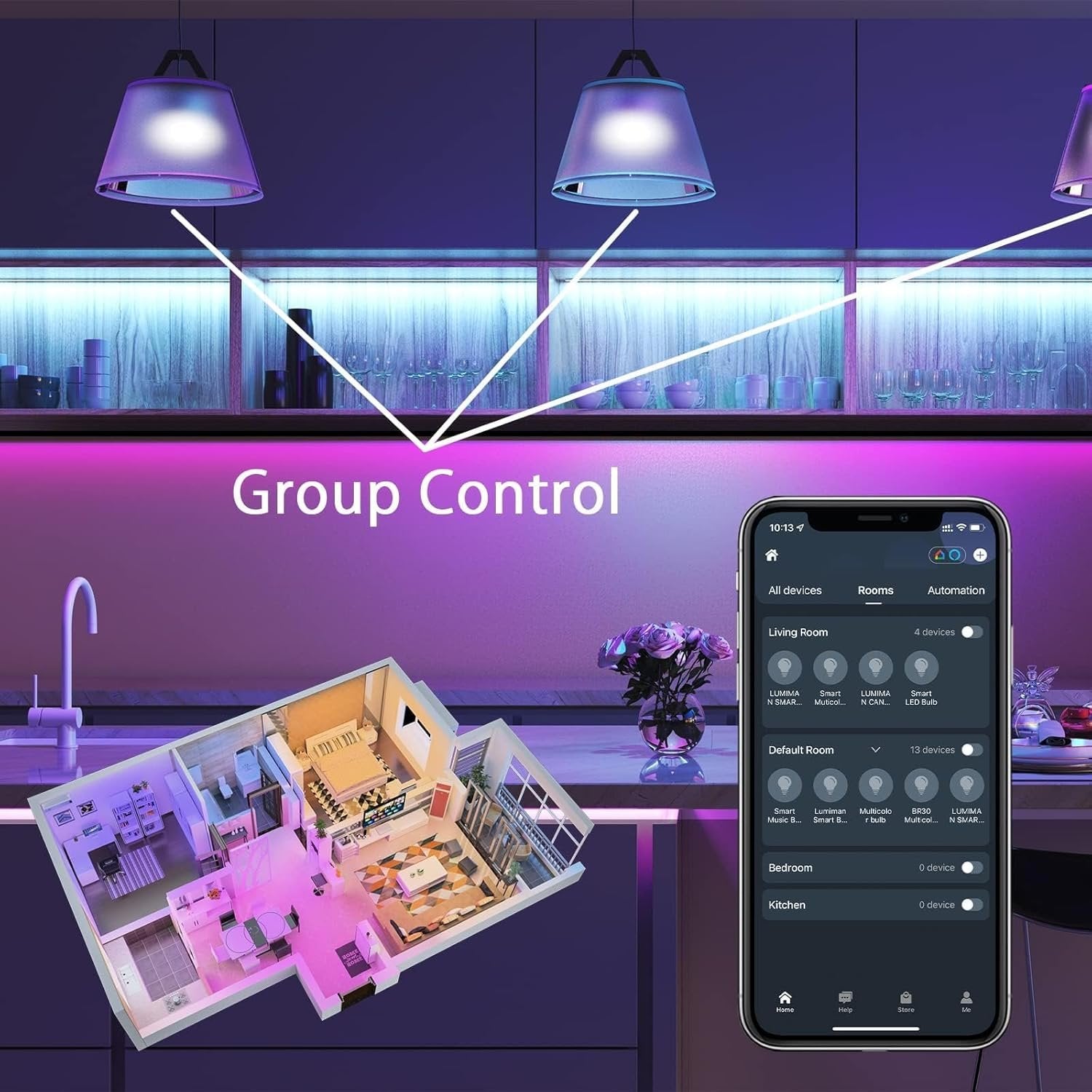 Hand Free: Allow to control bulbs with SmartLife App. Smart bulbs that work with Alexa and Google Home, you can use simple voice commands to easily turn on/off the lights, dim the brightness and change the light bulbs color. Group Control: You can use the grouping function to create a group for one or several light bulbs and then activate all bulbs with one click. All groups can be shared with your family via email, you and your family can adjust the smart bulb status at home at any time. Timer and Schedule: Automatically turn on the led light bulbs at sunset, and turn off the light bulbs at sunrise. Save you the trouble of manual controls. Or set schedules through the mobile APP to turn on/off bulbs automatically based on your routine.for choosing to DIY your scenes. You can adjust different light bulb brightness and color according to your mood to create a comfortable lighting atmosphere. Music Sync: Sync your smart light bulbs to your favorite music; the bulb can dance with the beat and change colors to the rhythm of the music. Also, you can create and save your unique scenes and your favorite lighting settings for next time. It is an ideal choice for a party and creates multiple atmospheres. Easy to Install: Follow step-by-step instructions; you only need the 30s to connect the LED smart bulb. ★24/7 service online and worry-free 24-month warranty.First time using the smart bulb only supports 2.4Ghz WiFi. Do not use bulbs with dimmer.