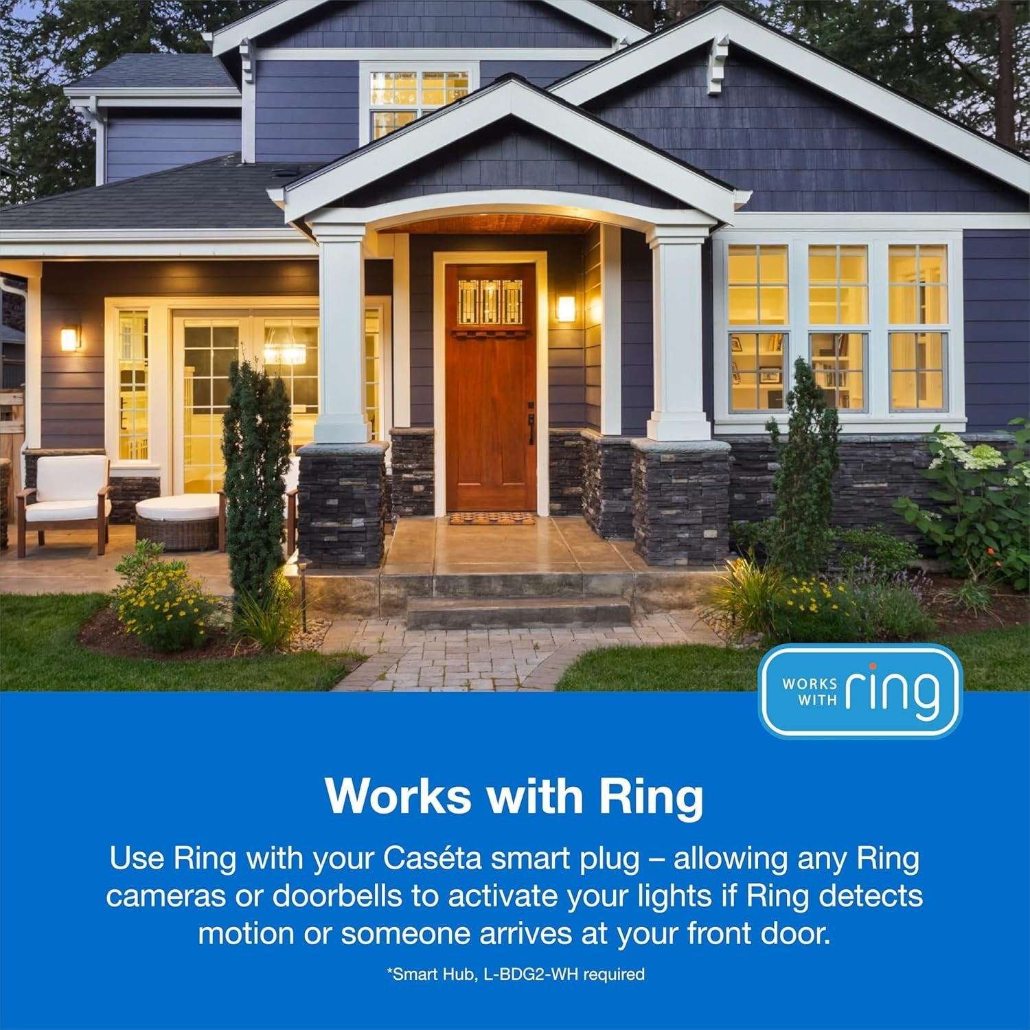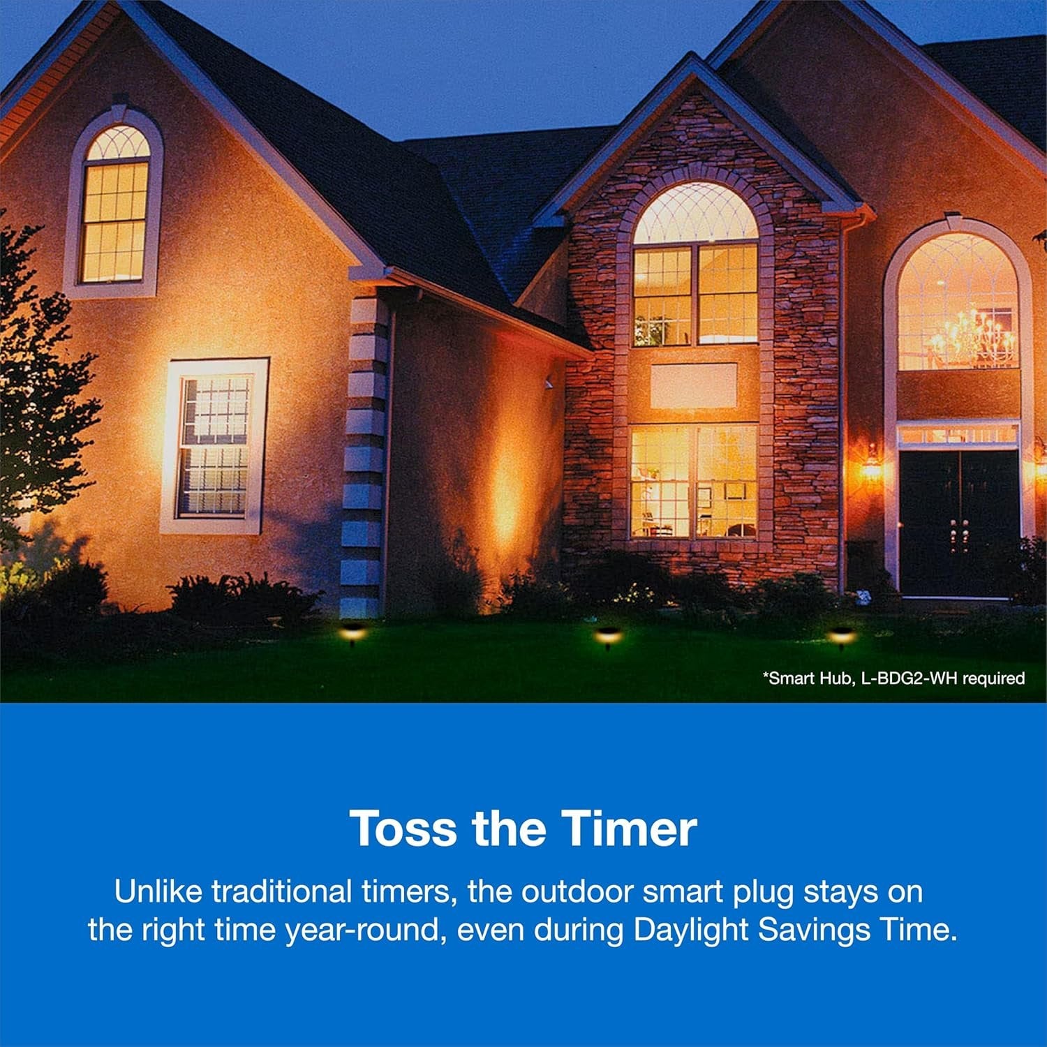 MEET YOUR SMART YARD: Experience the delight of returning to a home alive with light; perfect for patio string lights, landscape lights, holiday lights (up to 1,000 ft!), pond or fountain pumps, and more BUILT TO LAST: Polycarbonate body, and fully protected internal electronics, make for a smart outdoor plug that just works - year after year CONTROL YOUR WAY: Caseta puts the smarts in the switch so you can control your lights a variety of ways - via the free Lutron app, your voice, with a wireless Pico remote, or from the switch itself (Caseta Smart Hub, L-BDG2-WH, required; Pico sold separately) ULTRA-RELIABLE AND ULTRA-FAST: Uses Clear Connect technology (not Wi-Fi), so your connection is strong and responsive, and avoids issues like Wi-Fi drop out and lag (Caseta Smart Hub required) WORKS WITH: Add a Caseta Smart Hub (L-BDG2-WH) to use with Alexa, Google Assistant, Apple Home, Ring, and more