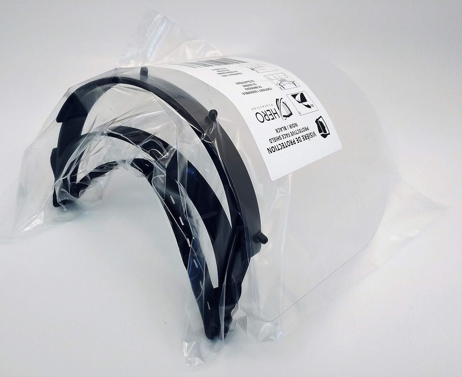 Made in Canada Hero Protection Safety Reusable Face Shields Full Face Protection with Anti-Fog Coating (1, Black)