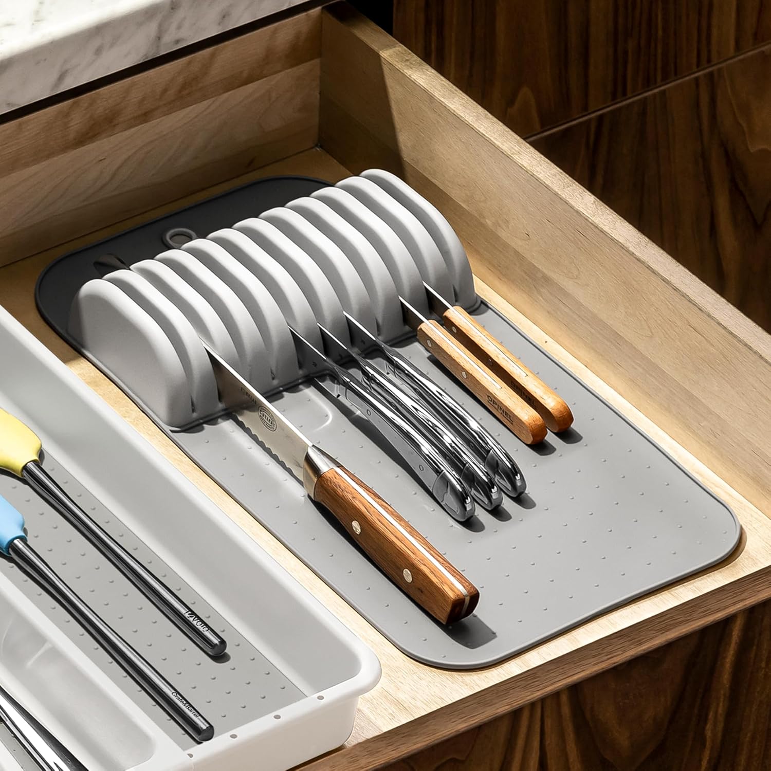 madesmart Classic Large Knife Mat Soft-Grip, Non-Slip Drawer, Long-Lasting Home Organization, BPA Free, White