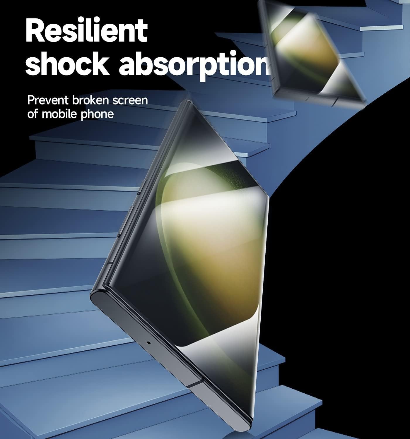 [Ceramic Film Material] 6 layers of material material protection, from the explosion-proof layer to the oil repellent anti-fingerprint layer for material upgrade. Compared to TPU material, it is easier to install, more anti-fall, and more anti-fingerprint fingerprint. [Fingerprint ID] Ceramic film is a new material specifically designed to be compatible with Galaxy S23 Ultra ultrasonic fingerprint scanner [7H Hardness] Galaxy S23 Ultra screen protectors are created from 7H hardness material to protect your screen from daily wear, such as dust, oil and fingerprint smudges, and can offer some protection in the event of a drop [Screen Protector Compatible with Samsung Galaxy S23 Ultra Screen Protector 6.8"] Specially designed ONLY for Samsung Galaxy S23 Ultra Screen Protector 6.8", 100% touch accurate. Not compatible with any other iPhone models [HD Clarity] Ultra-clear glass ensures amazing clarity for viewing experience and Face-ID compatibility