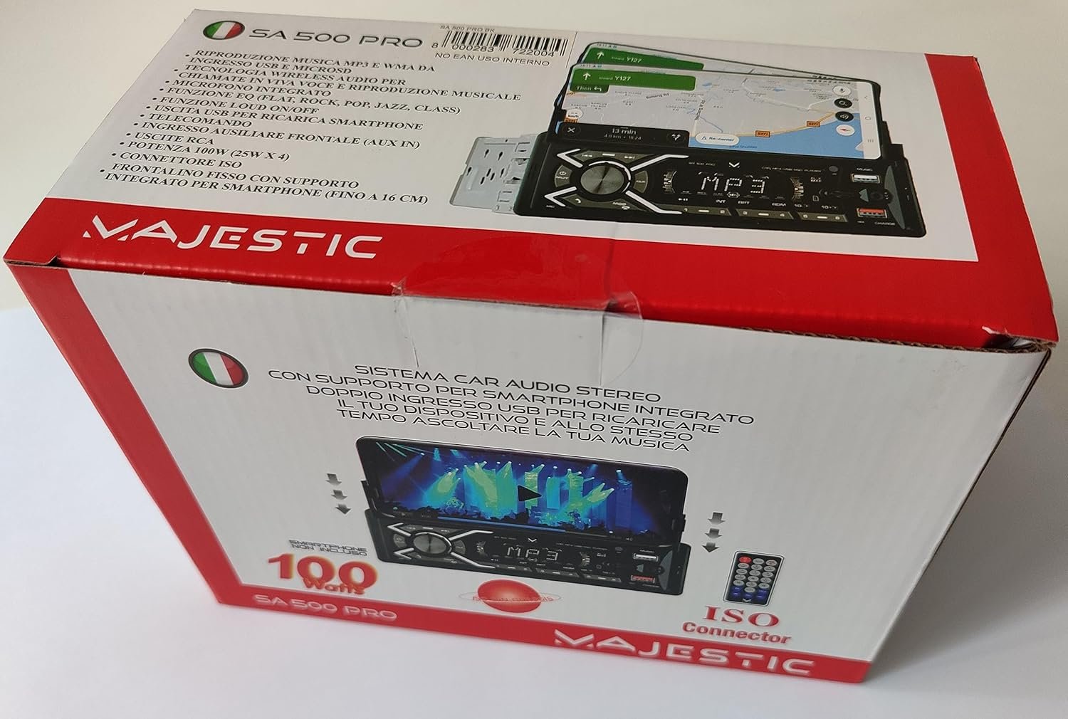 Majestic SA 500 PRO Car Audio System with Smartphone Holder, Bluetooth, MP3/WMA Player USB/Micro SD, Aux-IN, Remote Control, 100W (25W x 4ch), Black