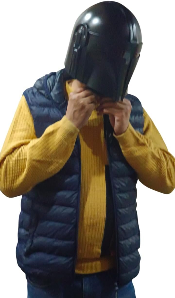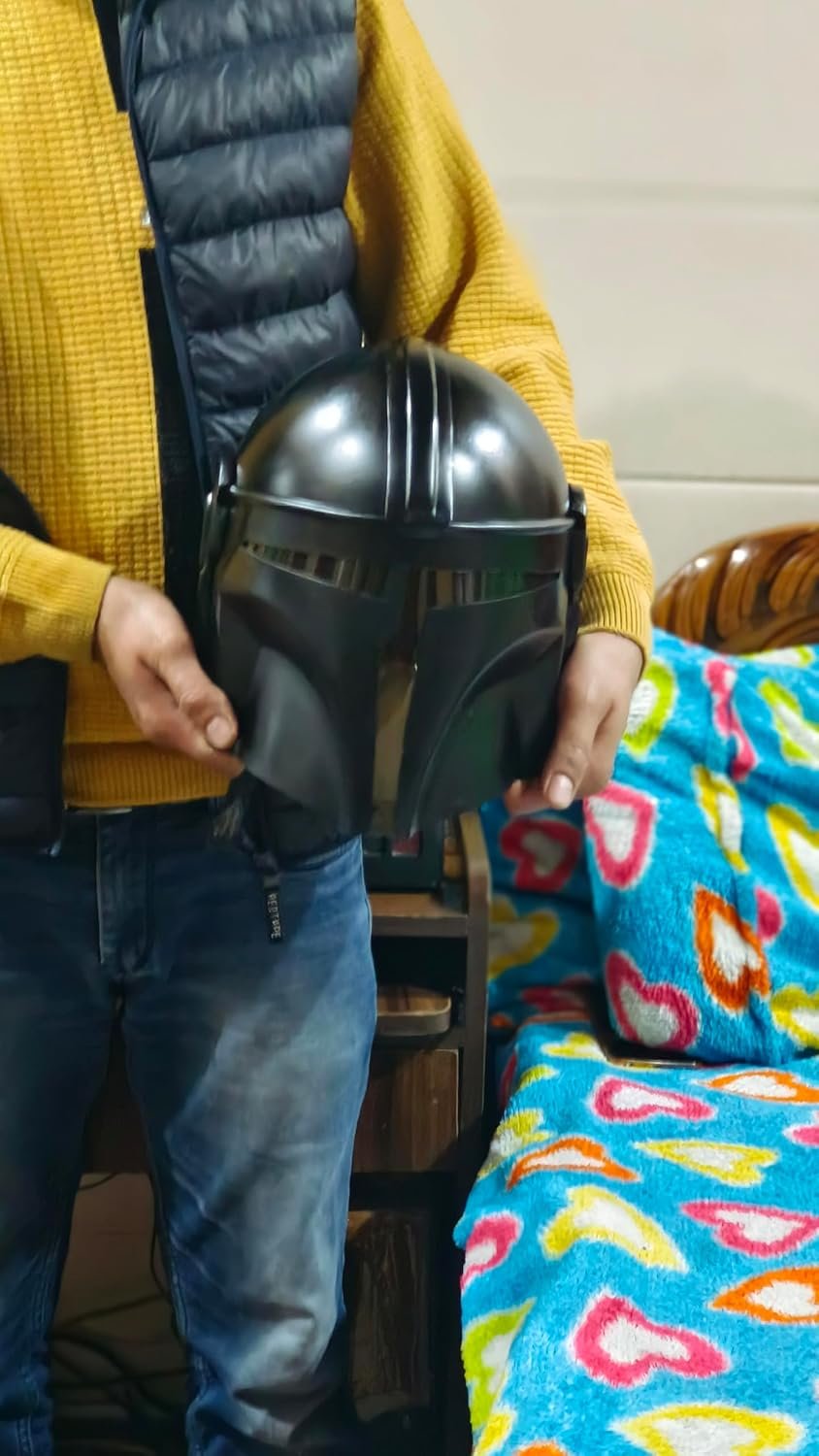 ✔️★➜Premium Steel Construction: Made from high-quality steel, this helmet offers a robust and durable design that ensures longevity while maintaining an authentic look and feel reminiscent of the movies. ✔️★➜Iconic Boba Fett Design: This helmet features the signature T-shaped visor and detailed armor design, capturing the essence of Boba Fett’s iconic appearance from the films. Every detail is crafted to reflect the unique aesthetics of the character. ✔️★➜Comfortable and Wearable: The interior is padded with foam for comfort during long wear, making it suitable for extended periods at conventions, LARP events, or costume parties. Adjustable straps allow for a secure fit for various head sizes. ✔️★➜ HIGH QUALITY MILD STEEL HELMET :- A complex and intricate design that is both unique and beautiful. 1:1 replica helmet from the original movie version - Mandalorian. Full head, it looks very smooth and solid, & gives the metallic feel. You can see anything from the 'T' shape window or lens that made of black transparent acrylic. Helmet looks like great craftsmanship. ✔️★➜Perfect for Cosplay and LARP: Ideal for cosplay events, conventions, and LARP (Live Action Role Play) sessions, this helmet will make you the center of attention as you take on the role of the infamous bounty hunter. ✔️★➜Collector’s Item: This helmet is more than just a costume accessory; it’s a collectible piece for any Star Wars fan. Display it proudly as part of your memorabilia collection or wear it to showcase your passion for the franchise.