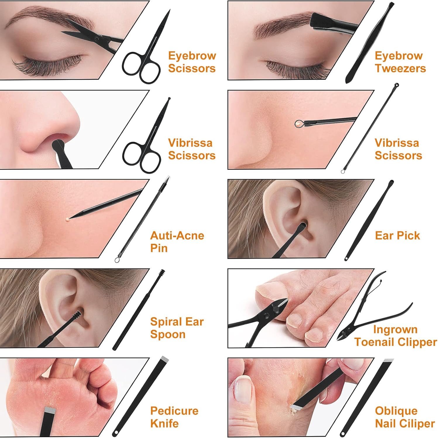 ❤ 18 in 1 Multifunctional Manicure Set - The professional manicure kit contains 18 tools for three functions hand care/face care/foot care and multiple uses manicure/pedicure/eyebrow shaping/anti-acne/ exfoliation etc. It can satisfy all your needs. ❤ Exquisite technology - Ergonomic design, making trimming easy and enjoyable. Made of stainless steel to ensure that each tool is beautiful and sturdy, not only comfortable wearing but also easy to trim. ❤ Anti-Lost & Portable - The PU leather suitcase is portable and can be easily opened by just pressing the button, which can definitely protect, store your tools and prevent them from being lost. With the suitcase, you will become a stylish woman or man anytime, anywhere. ❤ Great gifts: manicures, pedicures, eyebrow trimming, acne removal, exfoliation, and more, all in one set. This is a great gift for family or friends. ❤ Intimate Service - Provide 100% satisfied service. If you have any questions or suggestions about the manicure sets using, please send a message to the seller through Amazon immediately and we will respond within 24 hours.