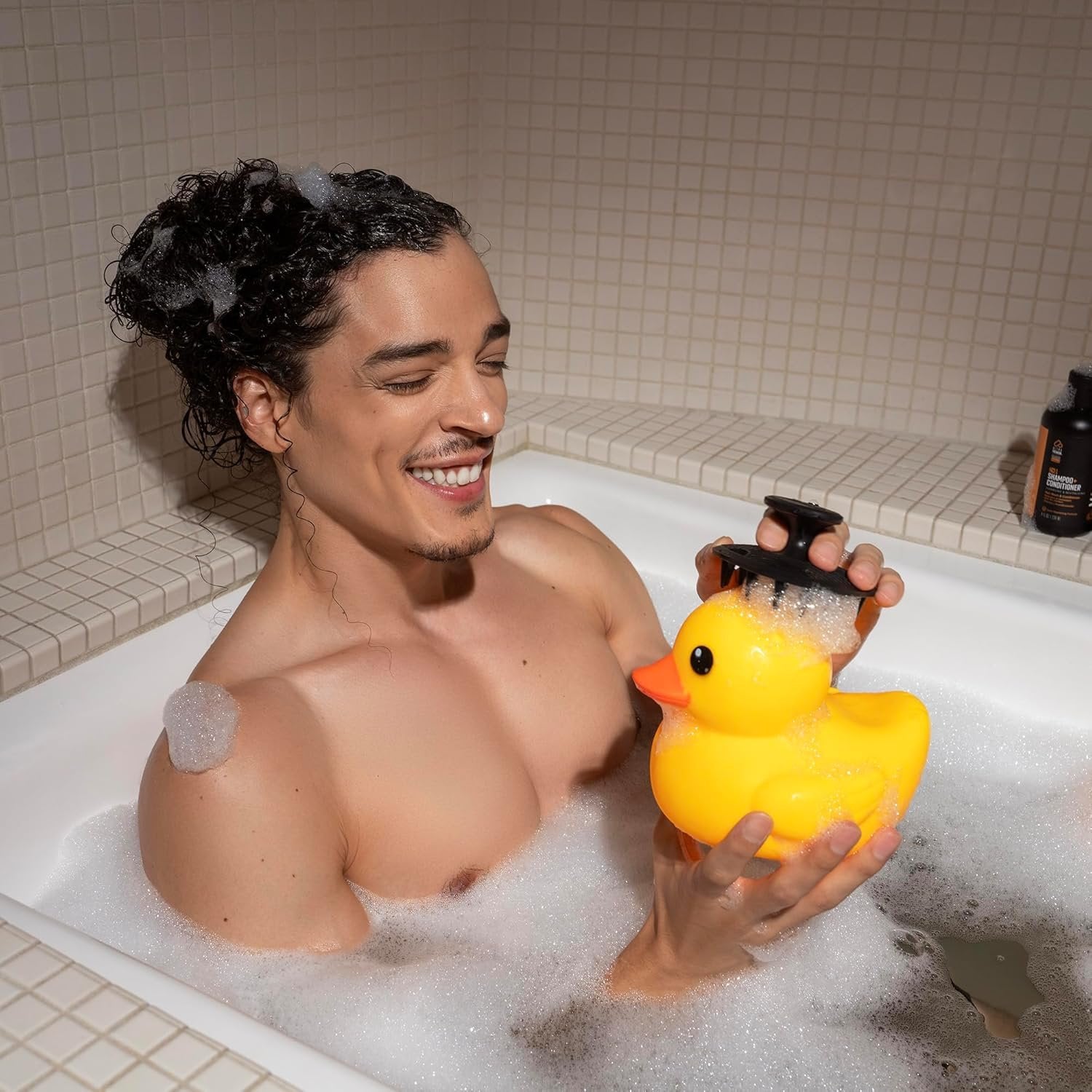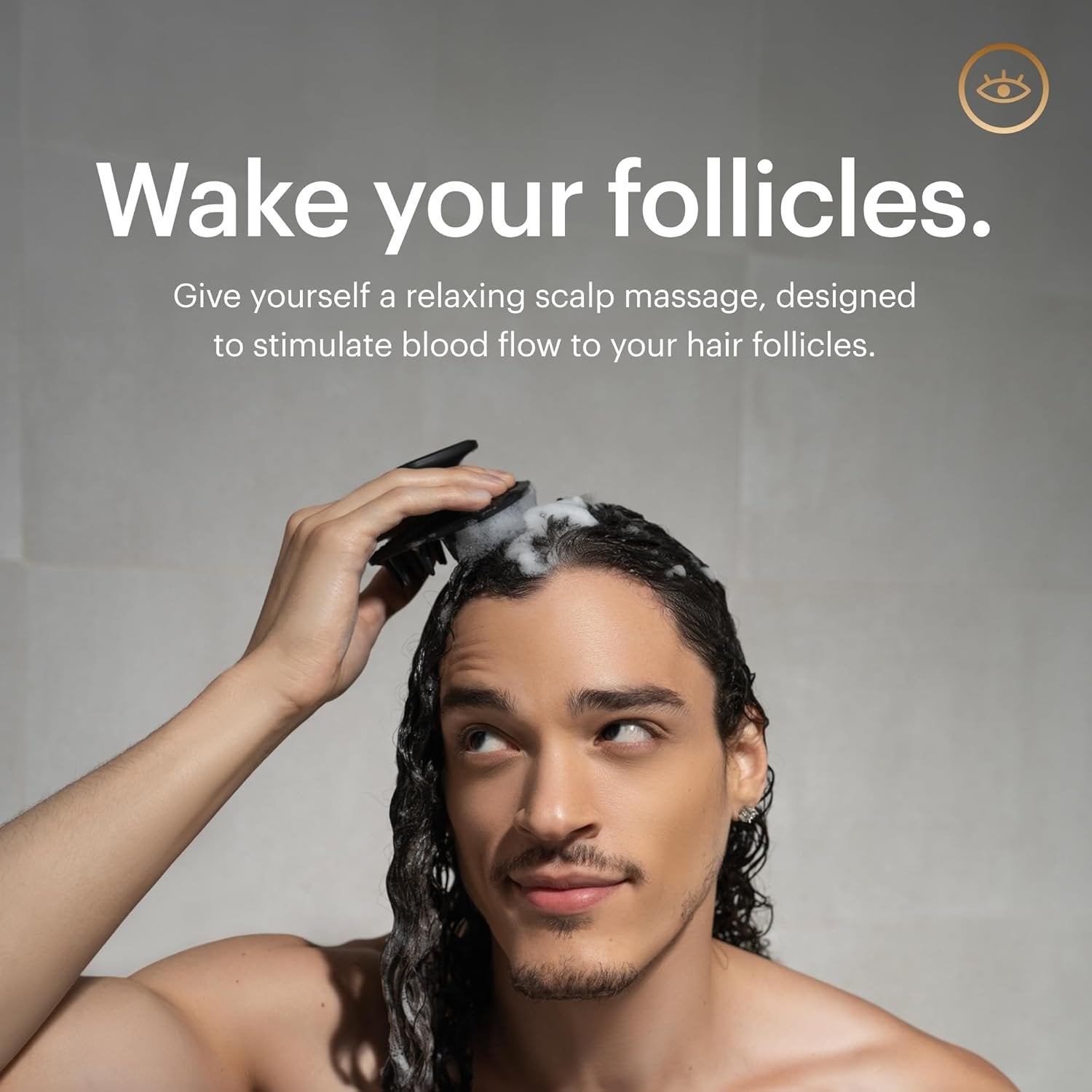 THE SCALP BUFFER: Perfect for all hair types, this scrubber is compact and easy to travel with. A comfortable handheld design ensures a non-slip grip, making it easy to use in the shower or bath. It has a built-in hanging notch for easy storage and quick drying. CLEAR YOUR HEAD: A gentle wet or dry scrub exfoliates your scalp to help reduce flaking from dry skin and product buildup. KEEP IT CLEAN: Silicone bristles keep scum away and suds at play. Silicone is also durable and makes it easy to keep the scrubber clean. REFRESH YOUR ROOTS: Round-tip bristles provide a penetrating scalp scrub, helping hair products reach your roots. WAKE YOUR FOLLICLES: Give yourself a relaxing scalp massage, designed to stimulate blood flow to your hair follicles. Add a nickel-sized drop of our 2-in-1 Shampoo + Conditioner to your Scalp Buffer, work it into a lather, and massage in small, circular motions.