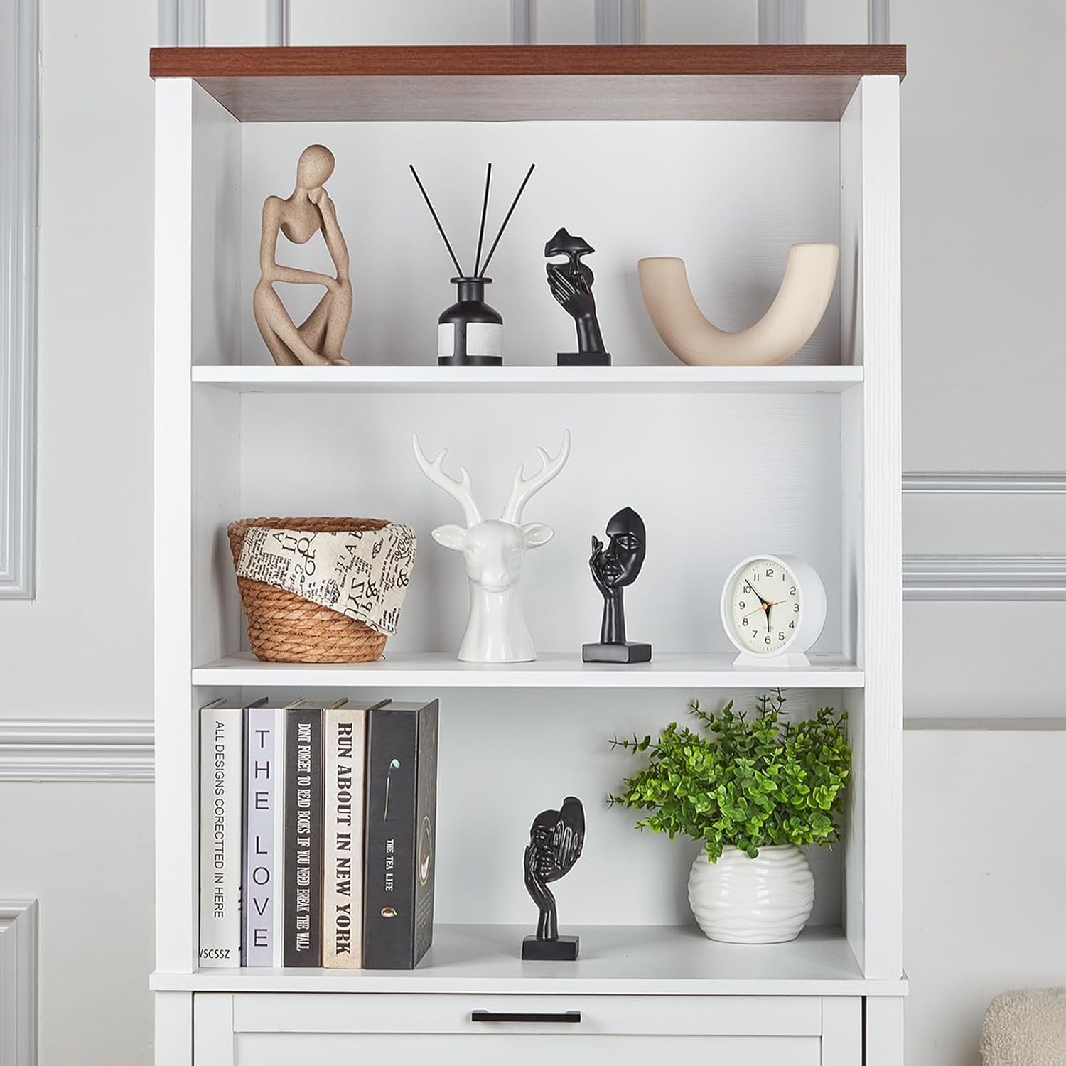 PERFECT GIFT CHOICE - This sculpture set is a perfect gift for friends and family. It is not only a work of art, but also an excellent reflection of your love and taste in life. Give such a special gift, I believe it will be remembered in people's hearts. HIGH QUALITY & EXQUISITE CRAFTSMANSHIP - Each sculpture is finely polished and colored to ensure it can last and continuously maintain its gorgeous appearance. The exclusive tones of gold and black are in the right proportions, making it a work of art whether you look closely or from a distance. THE COMBINATION OF ART AND SPIRIT: This set of three female face sculptures combines the inspiration and spiritual connotation of modern art. Gold and black intertwine to create a sculptural experience that people can't help but want to admire. Sculpture from the Thinker Collection: Inspired by modern art, our sculptures contain a deep philosophy through the design of female faces and thinkers.
