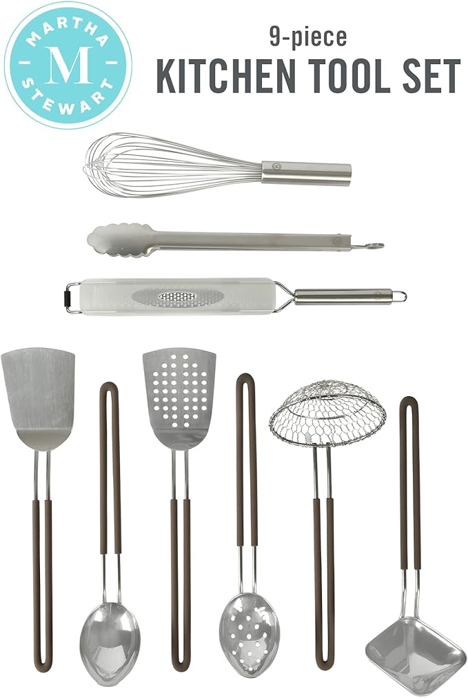 Martha Stewart 9-Piece Stainless Steel Prep & Serve Kitchen Gadget and Tool Set - Dishwasher Safe