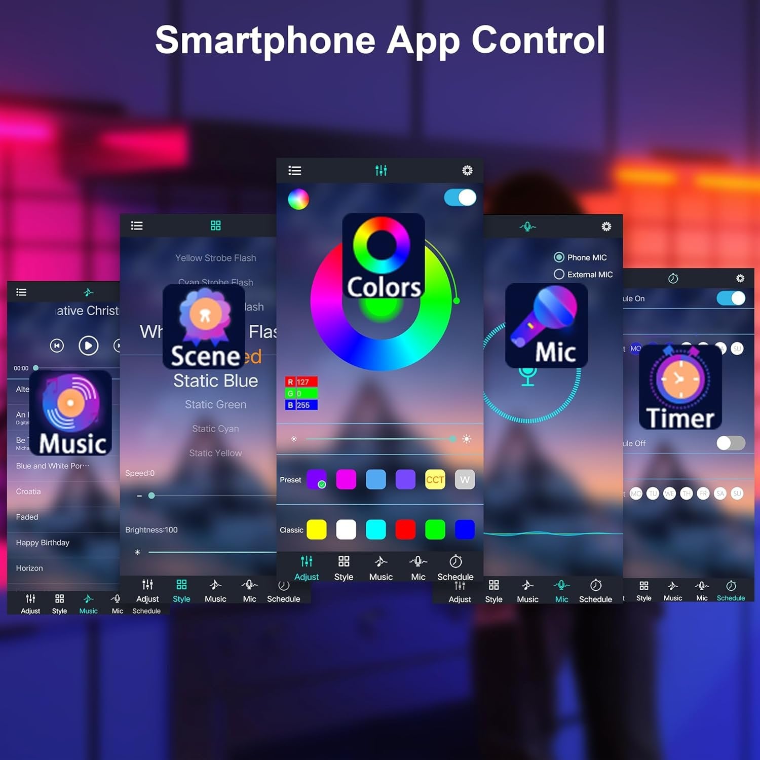 【RGB Mood Lighting】Illuminate your kitchen cabinets, garage, shelves, closets, desk, workbench, stairs, and more with vibrant, multicolor lighting. 【Sync with Music】Enhance the ambiance of your kitchen with our RGB LED lights that synchronize with the rhythm of your favorite music or the beat of your voice through a phone app. Immerse yourself in a romantic atmosphere and create unforgettable moments while cooking. 【Effortless Installation】Our cabinet lights come with strong self-adhesive backing, making installation a breeze. Simply wipe the desired surface, securely attach the lights, and plug them in to instantly enjoy their brilliance. 【Versatile Applications】Suitable for various settings, these RGB under cabinet lights are perfect for illuminating kitchen cabinets, counters, shelves, TV backs, displays, stairs, showcases, bookcases, and more. Rest assured that any issues you encounter will be promptly addressed by our dedicated customer support team, available 24/7.