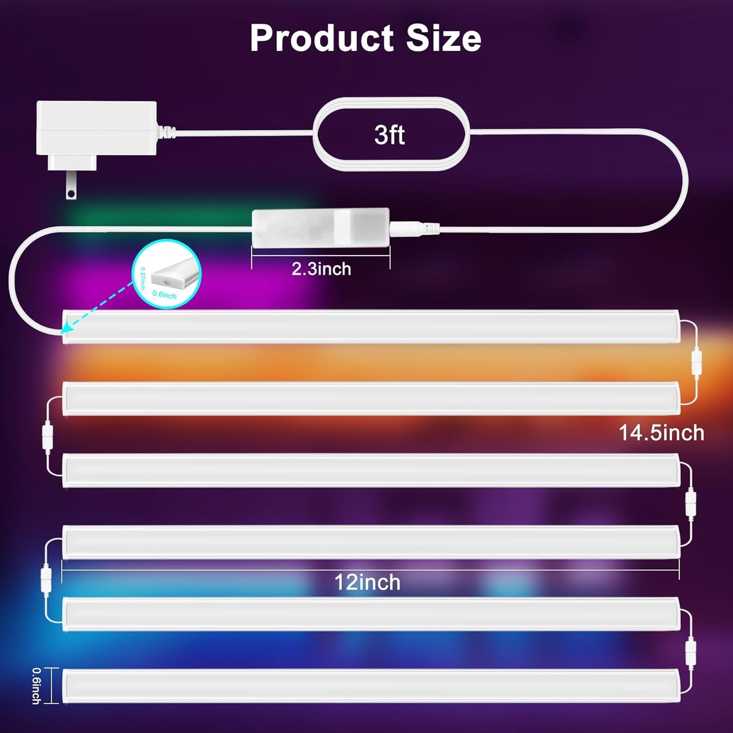 maylit Smart Under Cabinet Lights Plug in, 6 Pcs 12 Inch Ultra Thin Under Cabinet Lighting, Multicolor Under Counter Lights for Kitchen, Dimmable Mood Light for Cabinet, Counter, Workbench