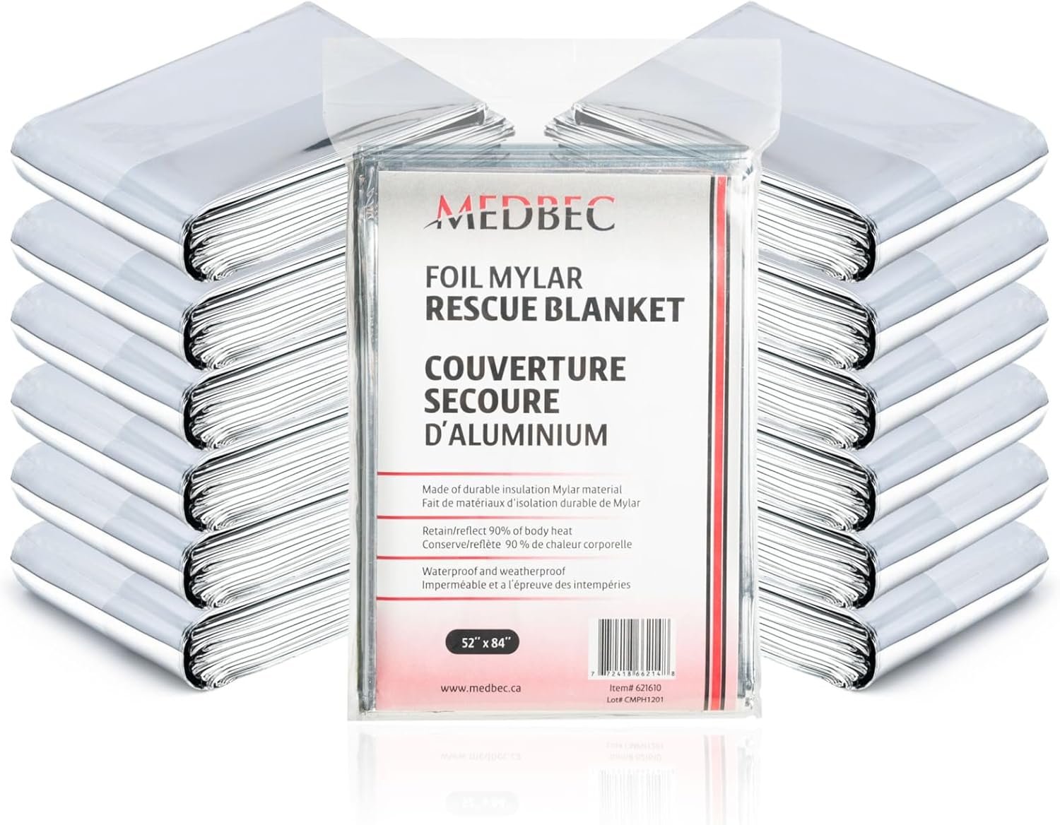 Unmatched Heat Resistance: The Mylar foil construction gives this emergency aluminum blanket remarkable heat resistance, conserving body heat during winters and reflecting heat when necessary. Exceptional resilience: Though thin and lightweight, this heavy-duty mylar blanket is highly resistant to tears and punctures, ensuring durable protection and comfortable use. Waterproof and Windproof: Besides offering superior insulation from cold air, the Medbec Aluminum Blanket also offers reliable protection against the elements, so you stay dry and sheltered in unpredictable weather conditions. Lightweight and Compact: Individually bagged, each mylar foil blanket is folded into a compact size, allowing you to store multiple pieces in your first aid kit or 72-hour kit. Versatile Use: Whether you are camping, hiking, or experiencing a vehicle breakdown in a cold location, this blanket serves as an excellent emergency tool to shelter you and also serves as a signal for help with its highly reflective surface.