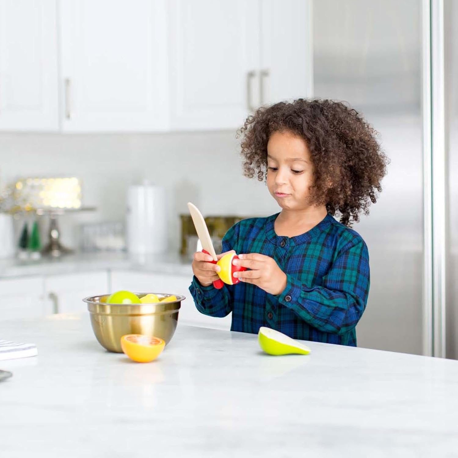 CREATIVE CUTTING FRUIT SET: The Melissa & Doug Cutting Fruit Set is a 17-piece play-food set with a wooden knife. The beautifully painted pieces feature realistic details. ATTRACTIVE WOODEN CRATE: This Cutting Fruit Set for kids includes an attractive wooden crate that stores all the pieces for convenient travel and organization. TEACHES CONCEPTS OF PART AND WHOLE: Our food set features self-stick tabs that hold pieces together and “slice” apart with a satisfying crunch sound. It helps teach children the concepts of part and whole for early math-development skills. GIFT FOR KIDS 3 TO 5: This Cutting Fruit Set is an ideal gift for kids ages 3 to 5 years. Add the Melissa & Doug Play Time Produce Fruit Play Food Set to round out the pretend play experience and give kids an engaging option for screen-free fun. THE GOLD STANDARD IN CHILDHOOD PLAY: For more than 30 years, Melissa & Doug has created beautifully designed imagination- and creativity-sparking products that have been called the gold standard in early childhood play. 100% HAPPINESS GUARANTEE: We design every toy to the highest quality standards, and to nurture minds and hearts. If your child is not inspired, give us a call and we'll make it right. Our phone number is on every product!