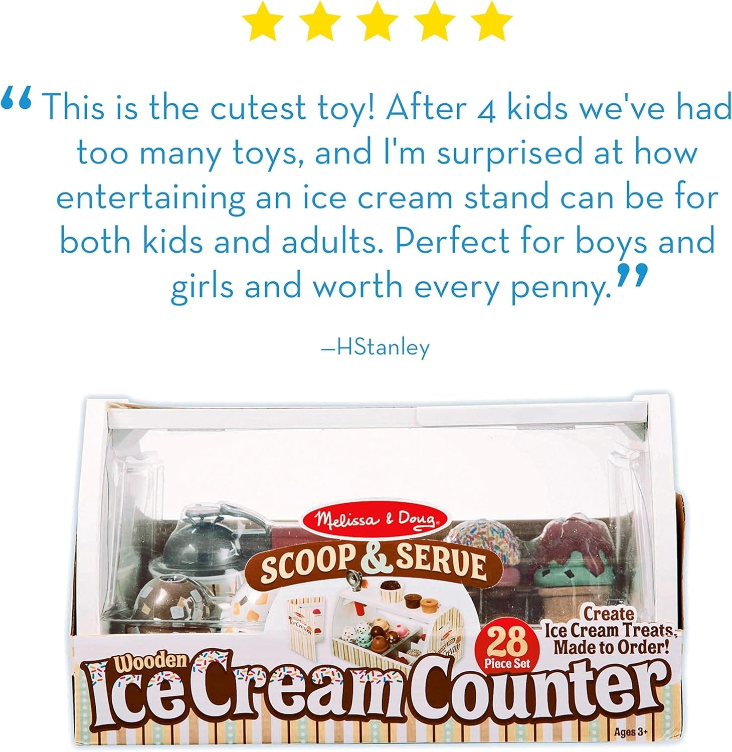 Melissa & Doug Wooden Scoop and Serve Ice Cream Counter (28 pcs) | Play Food and Accessories | Pretend Food, Ice Cream Toys, Ice Cream Shop Toys For Kids Ages 3+