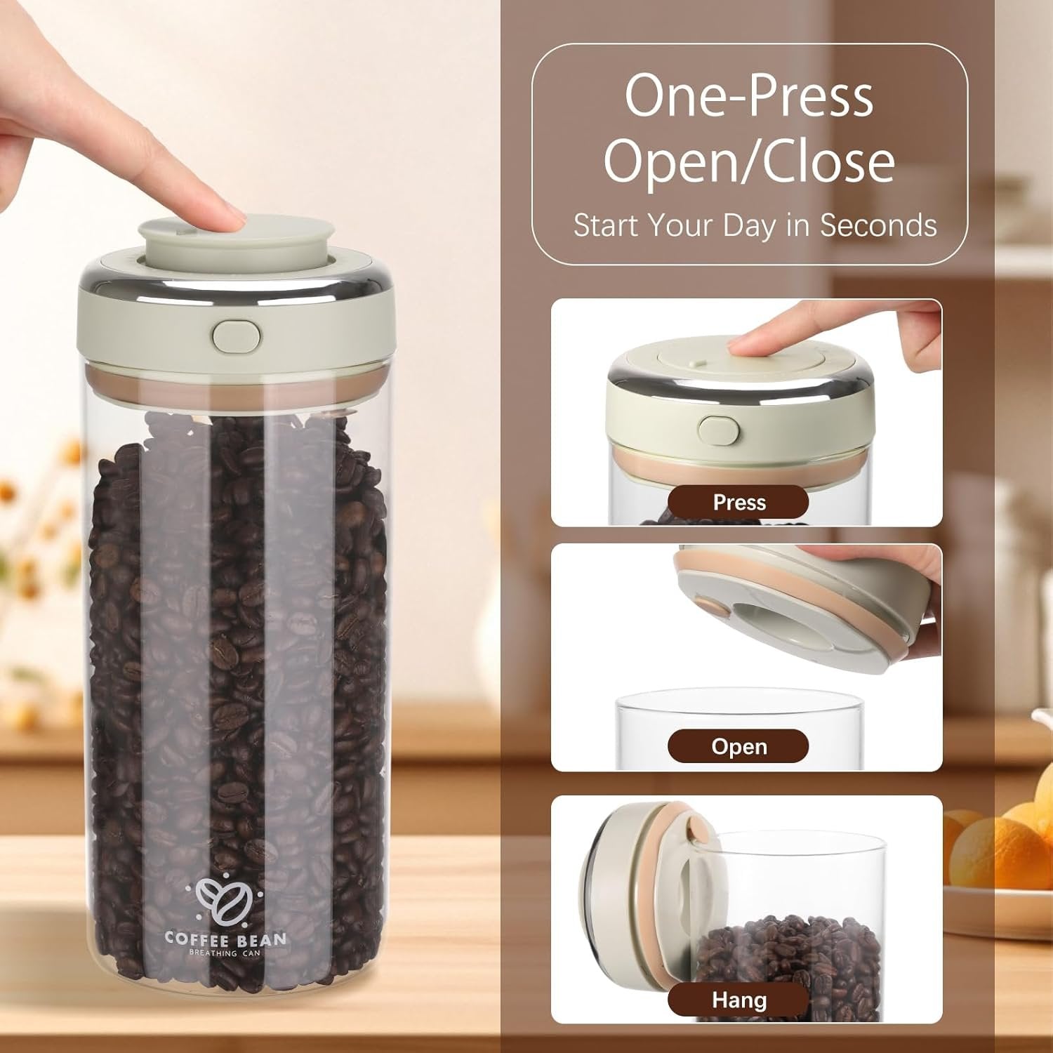 【1.7L Transparent Coffee Bean Canister】Enjoy a clear view of your coffee beans through ultra-transparent borosilicate glass. This airtight coffee container holds up to 500g of whole beans or ground coffee—perfect for a weekly supply. 【One-Way CO₂ Release Valve】The innovative one-way valve automatically releases carbon dioxide while blocking air and moisture, ensuring long-lasting freshness for your coffee beans. 【Premium Quality Materials】Crafted from food-grade borosilicate glass, this coffee bean container is heat-resistant (-20°C to 100°C) and odor-resistant. The airtight, BPA-free silicone seal locks in aroma and flavor. 【Versatile Storage Solution】Ideal for coffee beans, tea, spices, nuts, or dried fruits. A stylish addition to kitchens, offices, and cafés—or a practical gift for coffee enthusiasts.