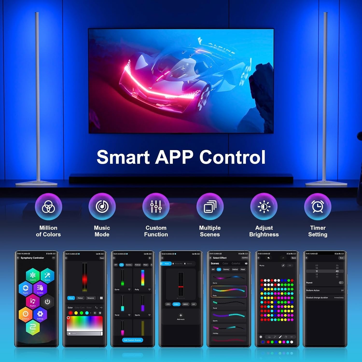 MIHEAL 2PCS Corner Floor Lamp, Synced Lights LED Control Floor Lamp RGB Light 56" Smart LED Corner Lamp App and Remote for Living Room Gaming Bedroom and Etc.