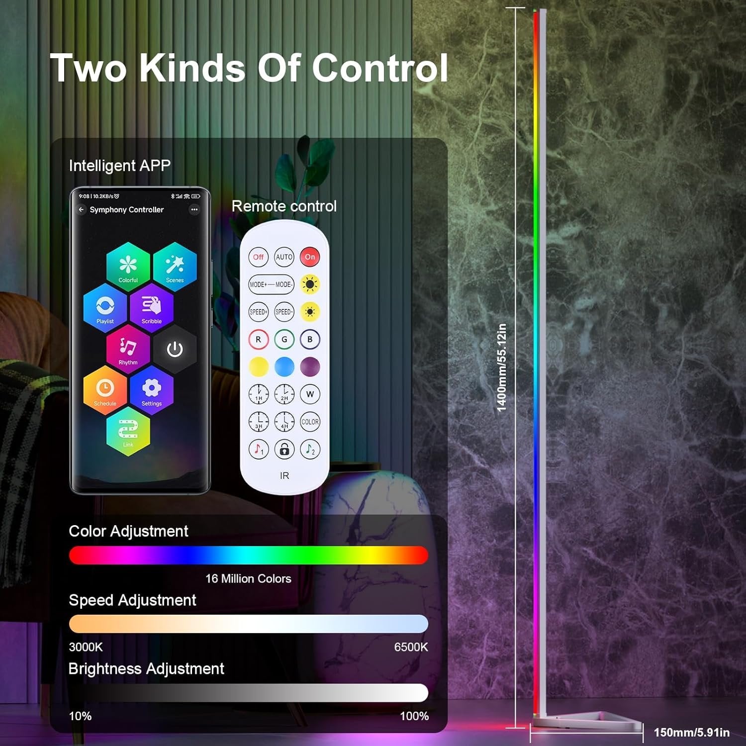 【Dynamic RGB+IC Colors】This RGB+IC corner floor lamp has a built-in high quality LED strip, made of High brighter light beads with 16 million light colors and 300+ lighting modes, low power consumption, more fine and safe lighting. You can customize the light color according to the occasion and mood, the floor lamp will show multi-color effects at the same time, creating different mood for you, perfect for Christmas and other festivals.
