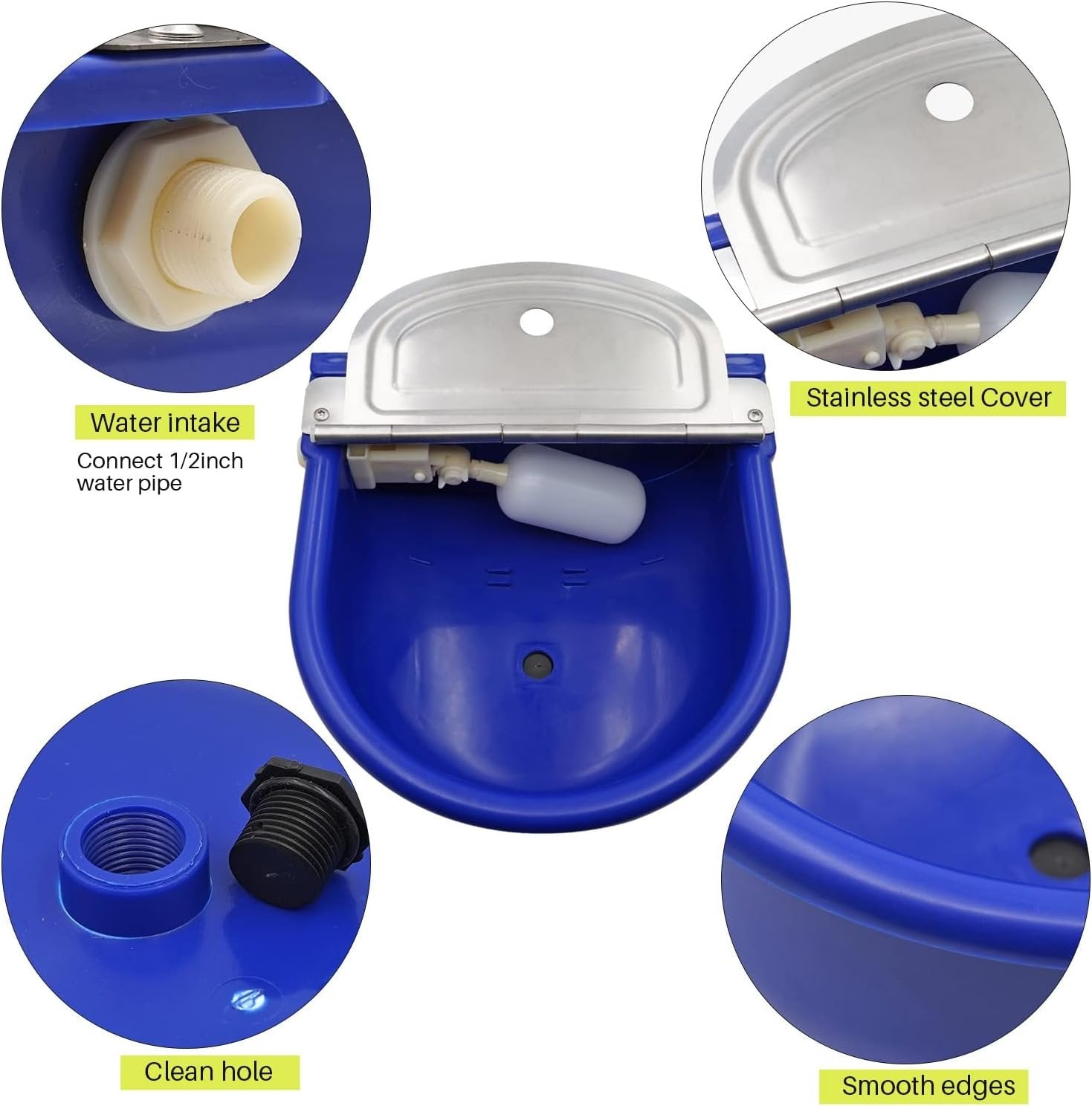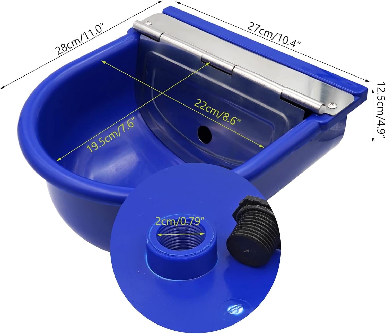 MINYULUA Automatic Waterer Bowl Large Horse Waterer with Float Valve and Drain Plug Automatic Water Feeder Dispenser Bowl for Sheep Dog Horse Cow Pig Plastic (Dark Blue)