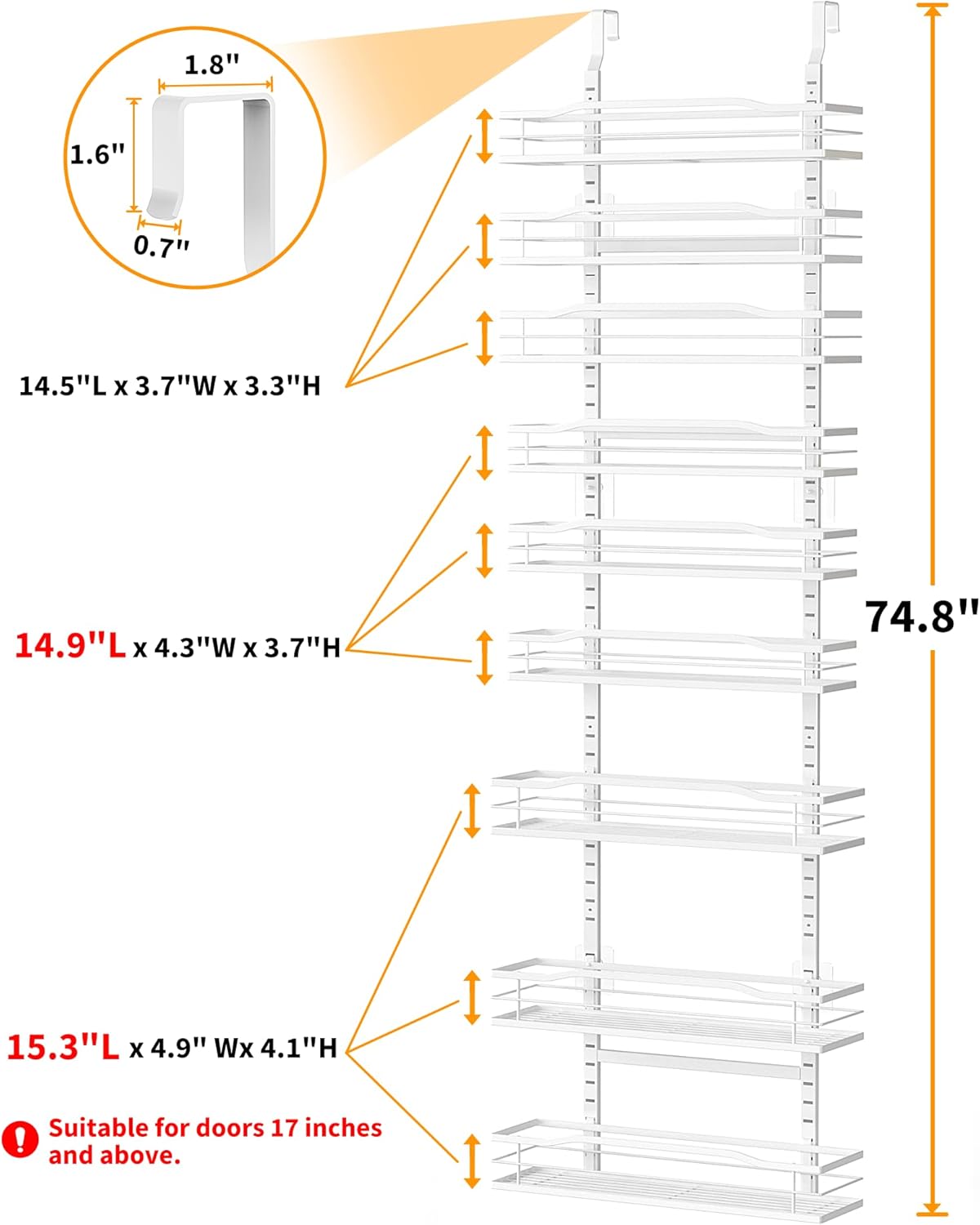 Moforoco White 9-Tier Over The Door Pantry Organizer, Pantry Organization And Storage, Metal Hanging Spice Rack Shelves Door, Home & Kitchen Essentials, Laundry Room Bathroom Organization