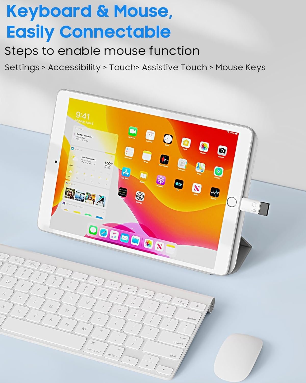 Support Charging/Two-way Data Transfer/Audio Function: This lightning to usb c adapter supports 10W (DC5V/2A) charging for your i-OS devices via a Type-C cable, with a transfer speed of up to 5Gbps to quickly read files such as images and videos from USB flash drives and digital cameras, saving you time and bringing you more convenience. (Note: USB3.0 interface or above is required for two-way data transfer of USB flash disk) Support OTG Function: This lightning to USB-A adapter has USB OTG (On-The-Go) function, no driver is needed, you can easily connect card reader, USB flash drive, keyboard, mouse, MIDI keyboard, lavalier microphone, digital headphones, and other USB Type C/USB A devices, make data transfer so easy! Widely Compatible: This USB-C to lightning adapter widely works for devices with Lightning port, such as iPhone14/13/12/11/SE/X/XR/XS/8/7/6/6s/Pro Max Plus mini, iPod Nano 7, iPod Touch 5, iPad 9/8/6/5,with iPad Pro, iPad Air 1/2/3,with iPad mini 5/4/3/2, Airpods 1/2/3 and Airpods Pro,etc, allowing you to charge your i-OS devices via Type-C cable, no longer limited by the Lightning cable. Compact and Convenient: Plug and play, unplug at great ease. This USB C to lightning cable adapter is small-sized and portable anywhere, take the hassle of changing different cables and connecting inconvenient drivers. Features premium aluminum alloy shell for excellent durability and heat dissipation, ideal for different occasions such as home, meeting room, office, car, going out, etc. Package Included: 1xLightning male to USB-C female adapter, 1xLightning male to USB-A female adapter, 1xanti-lost lanyard, 1xOPP bag.