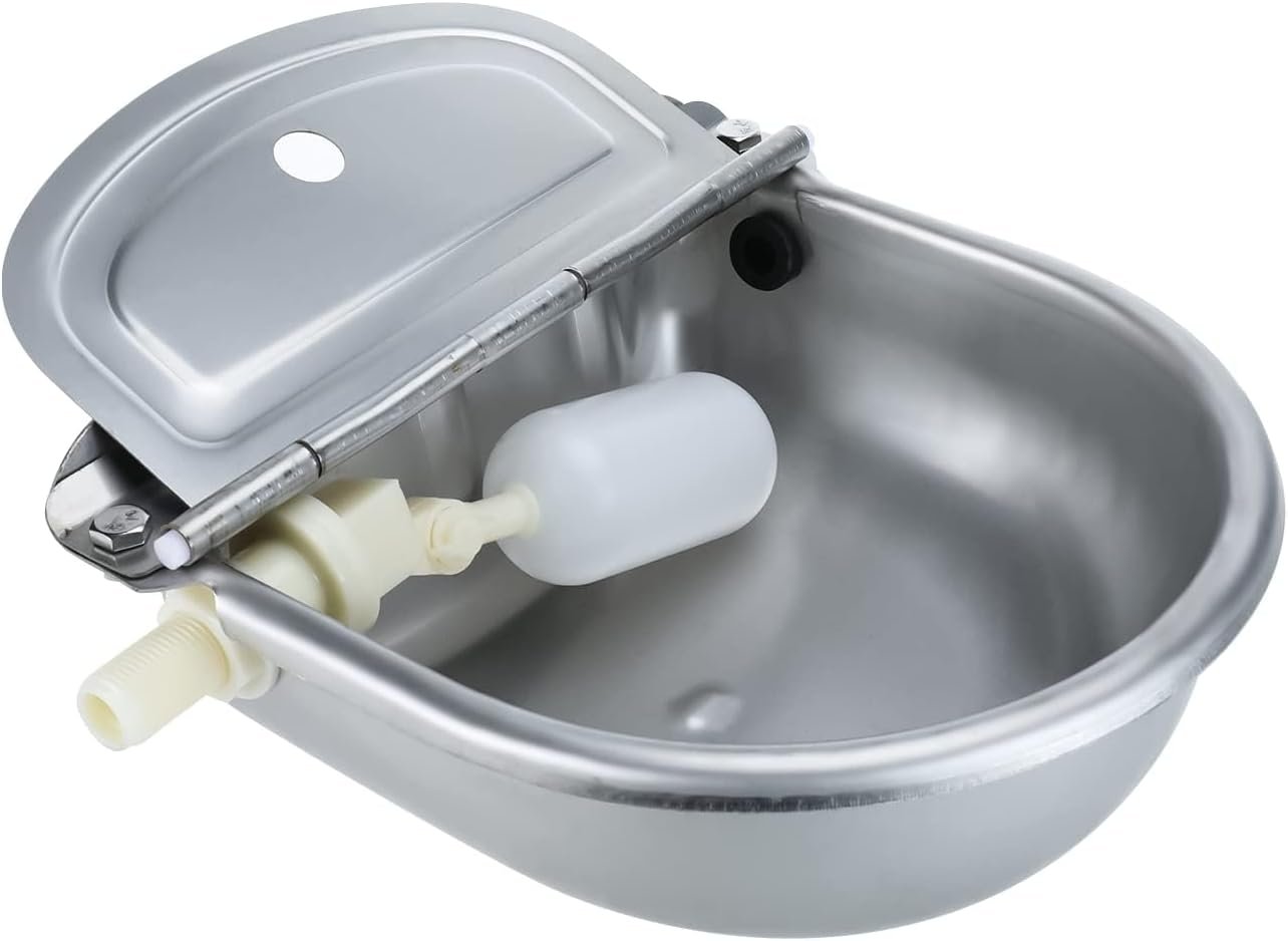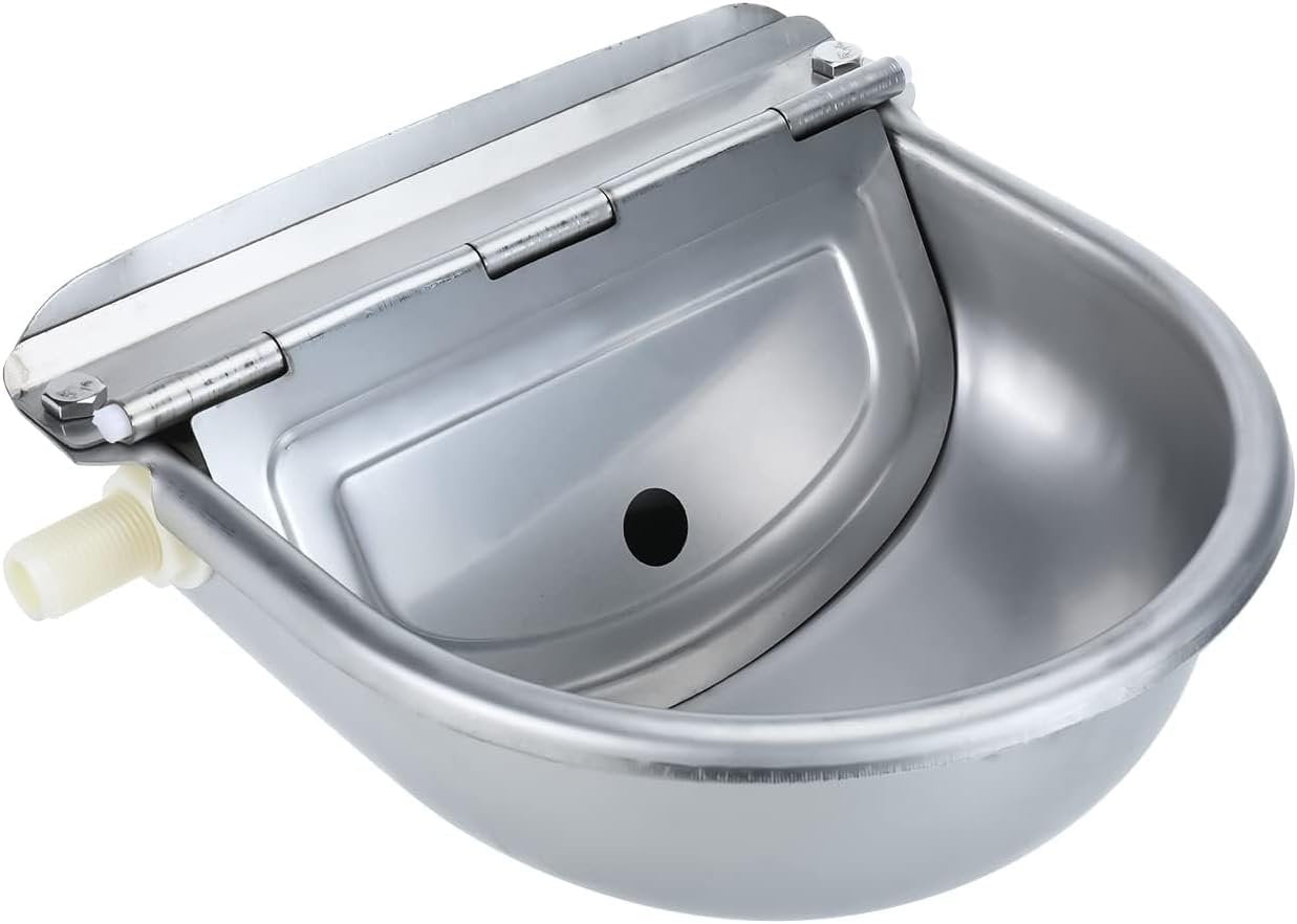 Mono-gatari Automatic Waterer Water Bowl Farm Livestock Stainless Steel Animal Drinking Water Bowl for Pigs Horse Cattle Goat Sheep Dog (with Drainage Hole, with Float Valve)