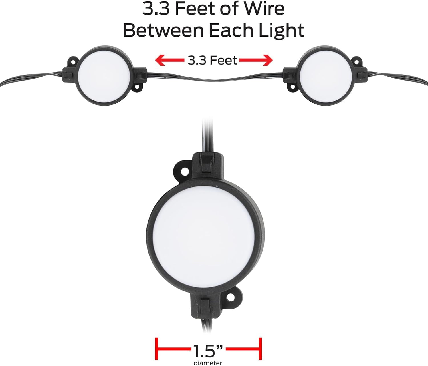 50ft of Customizable Smart Outdoor Lighting: This 50ft light strip includes 15 bright LEDs, perfect for illuminating your home’s exterior with vibrant, colorful lighting. Including stakes for ground placement and mounts for walls and ceilings, these lights provide customizable displays for any occasion, from Halloween to Christmas and year-round decoration. RGB+IC & Multi-White for Stunning Effects: Featuring advanced RGB+IC & Multi-White technology, each LED can display multiple colors simultaneously, creating dynamic, flowing lighting effects. Bring your outdoor space to life with stunning, multicolor patterns that are perfect for holidays or everyday ambiance. App & Voice Control with Alexa & Google: Easily control the lights via the Monster Smart app or through voice commands using Alexa or Google Assistant. Customize brightness, colors, patterns, and schedules from your smartphone, or use simple voice prompts to change settings hands-free. Perfect for Holiday & Year-Round Use: These smart lights are designed for versatility, making them ideal for both holiday displays and everyday use. Whether you’re lighting up for Halloween, Christmas, or adding ambiance to your backyard for summer nights, these lights are built for year-round enjoyment.