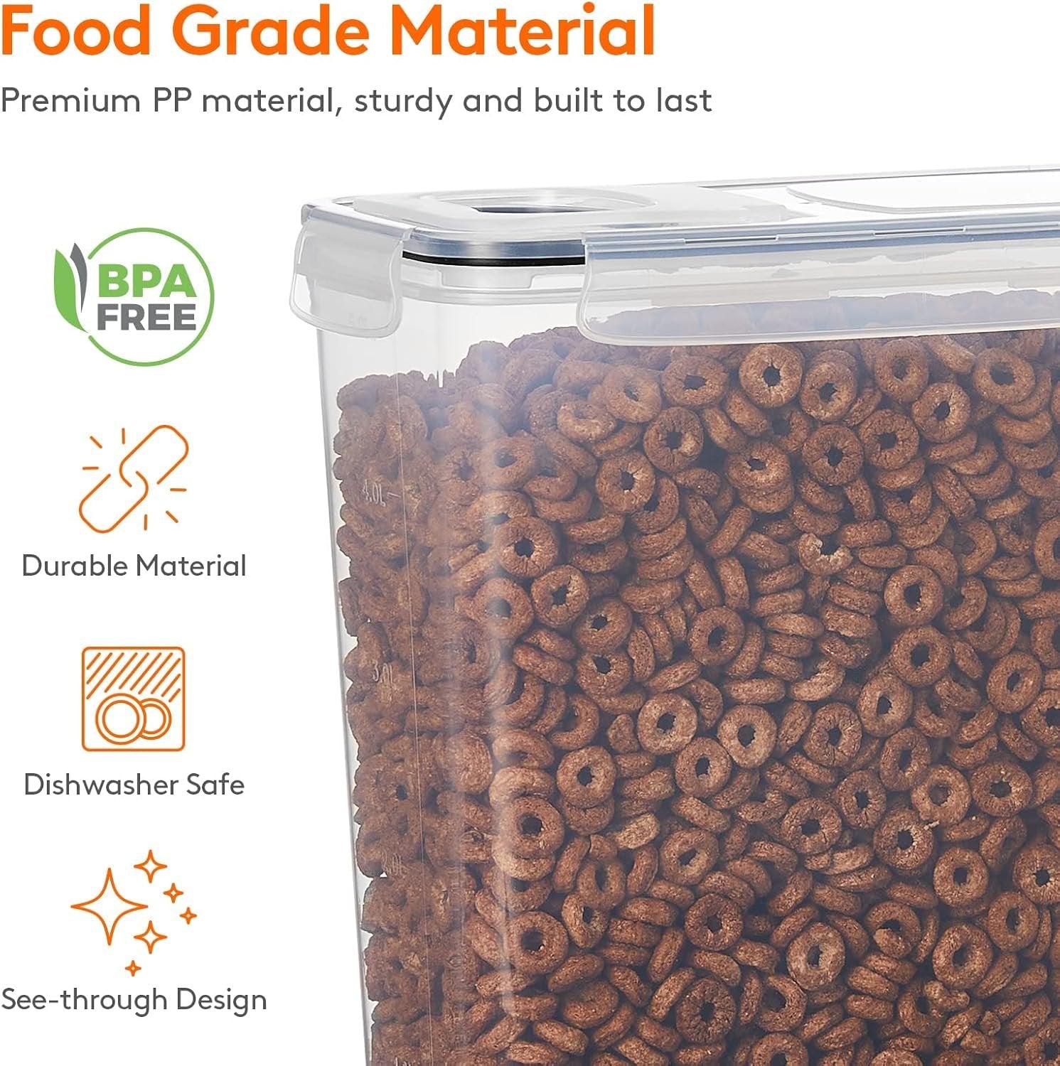 ✅Prolonged freshness - Keep your cereals fresh and dry with our airtight cereal storage containers for pantry. With four side-locking lids and silicone seal ring to keep moisture out of the cereal containers storage dispenser, your healthy mornings are guaranteed. ✅Superior Bundle - The perfect gift for yourself or someone you care about, this set of 4 BPA-free premium cereal dispenser containers(20*10*21cm), chalkboard marker, labels and measuring spoon set will help keep everything organized. ✅All in One - These pantry storage containers will not only keep the cereal fresh but they are also ideal for storing oatmeal, crackers, cookies, snacks, flour, sugar, nuts, coffee, pasta and other dry food storage. ✅Convenient Design - With our superior pout lid, you can pour your cereal easily without opening the top. These plastic cereal storage containers have a comfortable ergonomic grip and sleek, stackable design to save space. ✅Best Value - Our countertop cereal dispenser set will add to the decor of your pantry and cabinets. These MOTYYA kitchen storage containers will revolutionize pantry organization and storage. They are easy to clean, use and handle in the kitchen