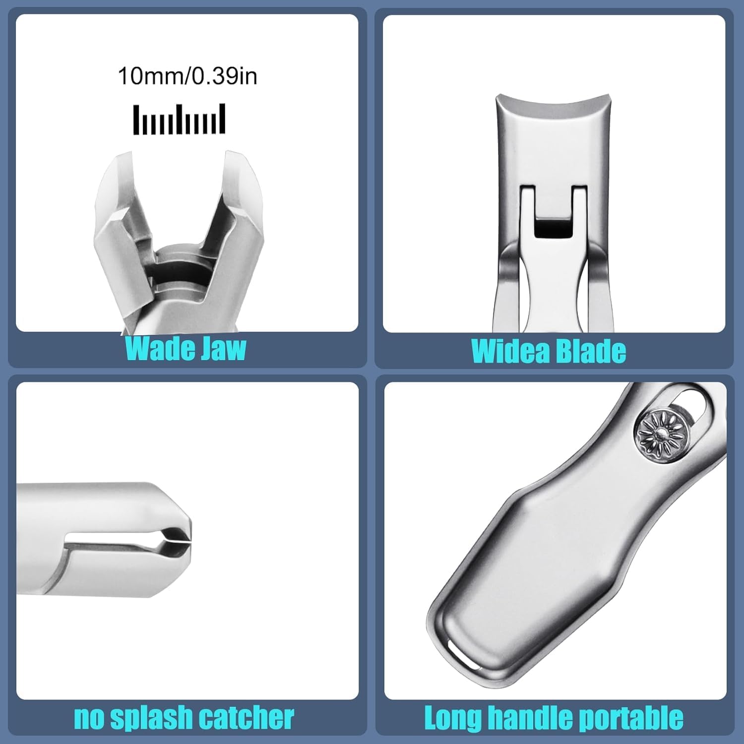 Large Opening and Durable Design:These nail clippers for men feature a 10mm wide opening, ideal for trimming tough nails. Designed as thick toenail clippers for seniors, they combine strength with precision. The large toenail clippers for thick nails ensure effortless cutting while maintaining control Splash-Proof and Secure Lock: Engineered as nail clippers with catcher, the anti-splash design keeps fragments contained. The German nail clippers for men boast a safety belt lock for adjustable cutting angles. Heavy duty nail clippers for thick nails deliver reliability for thick, stubborn nails Premium Stainless Steel Build:Crafted from sharp nail clippers-grade 304 stainless steel, these fingernail clippers for men ensure long-lasting sharpness. The sandblasted surface enhances grip, while heavy duty toenail clippers for thick toenails handle even the toughest nails effortlessly Ergonomic Comfort and Precision:The double-curved handle on these nail clippers for seniors ensures a non-slip grip. Perfect as finger nail clippers adult or toenail clippers for seniors, the wide handle reduces hand strain. A versatile nail cutter for precise, comfortable trimming Complete Kit and User-Centric:1 Wide Jaw Opening Anti-Splash Slanted Nail Clipper and 1 Wide Jaw Opening Anti-Splash curved edge fingernail clippers, for thick toenails with a diamond file . Designed as toe nail clippers for thick nails for seniors,
