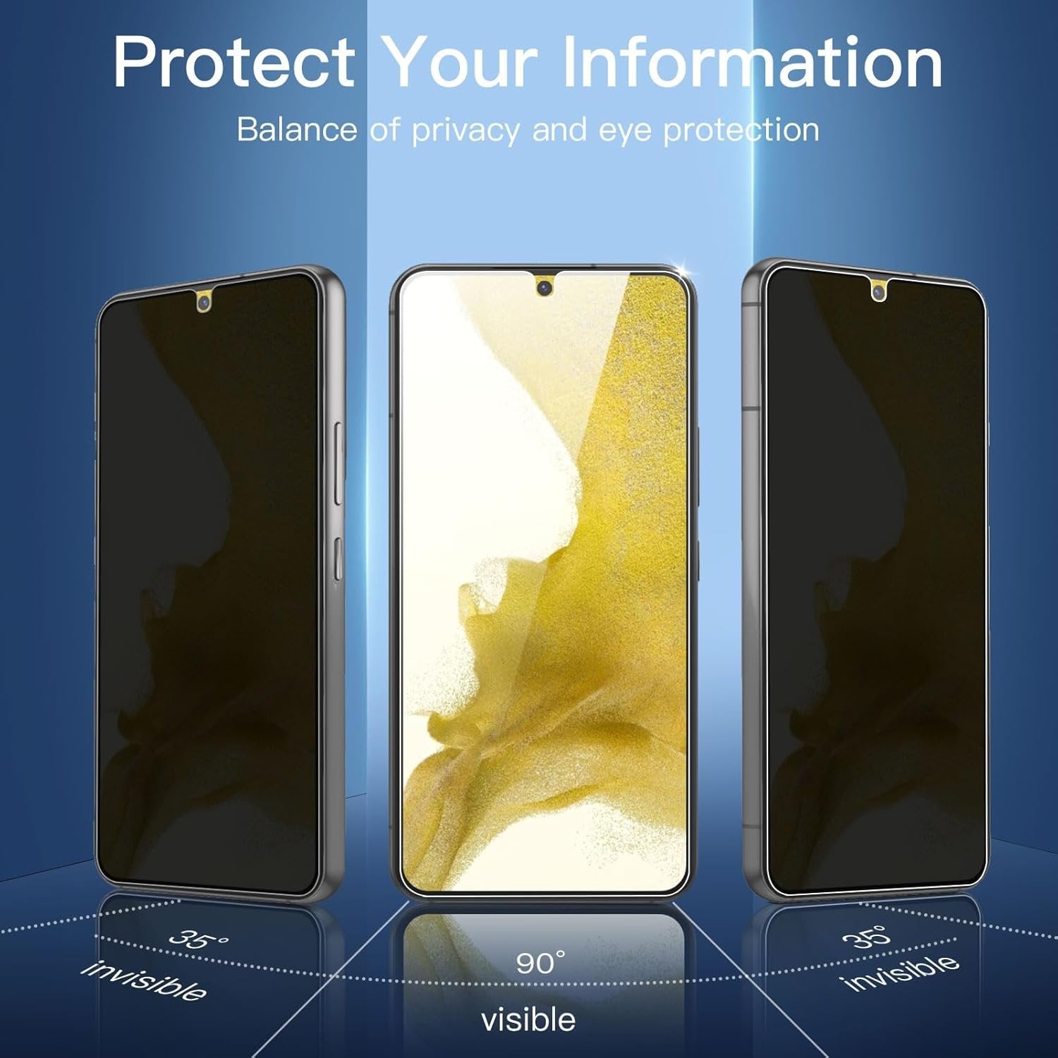 NEW'C 3 Pack Privacy Screen Protector for Samsung Galaxy S22 5G, Balanced 35-Degree Privacy Angle with Eye Protection, Ultra Durable 9H Hardness, Bubble-Free