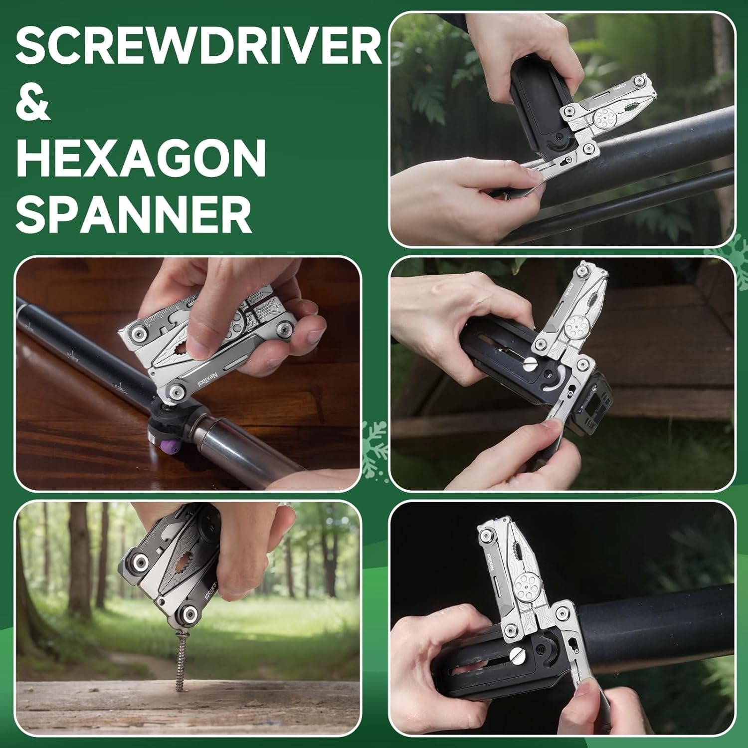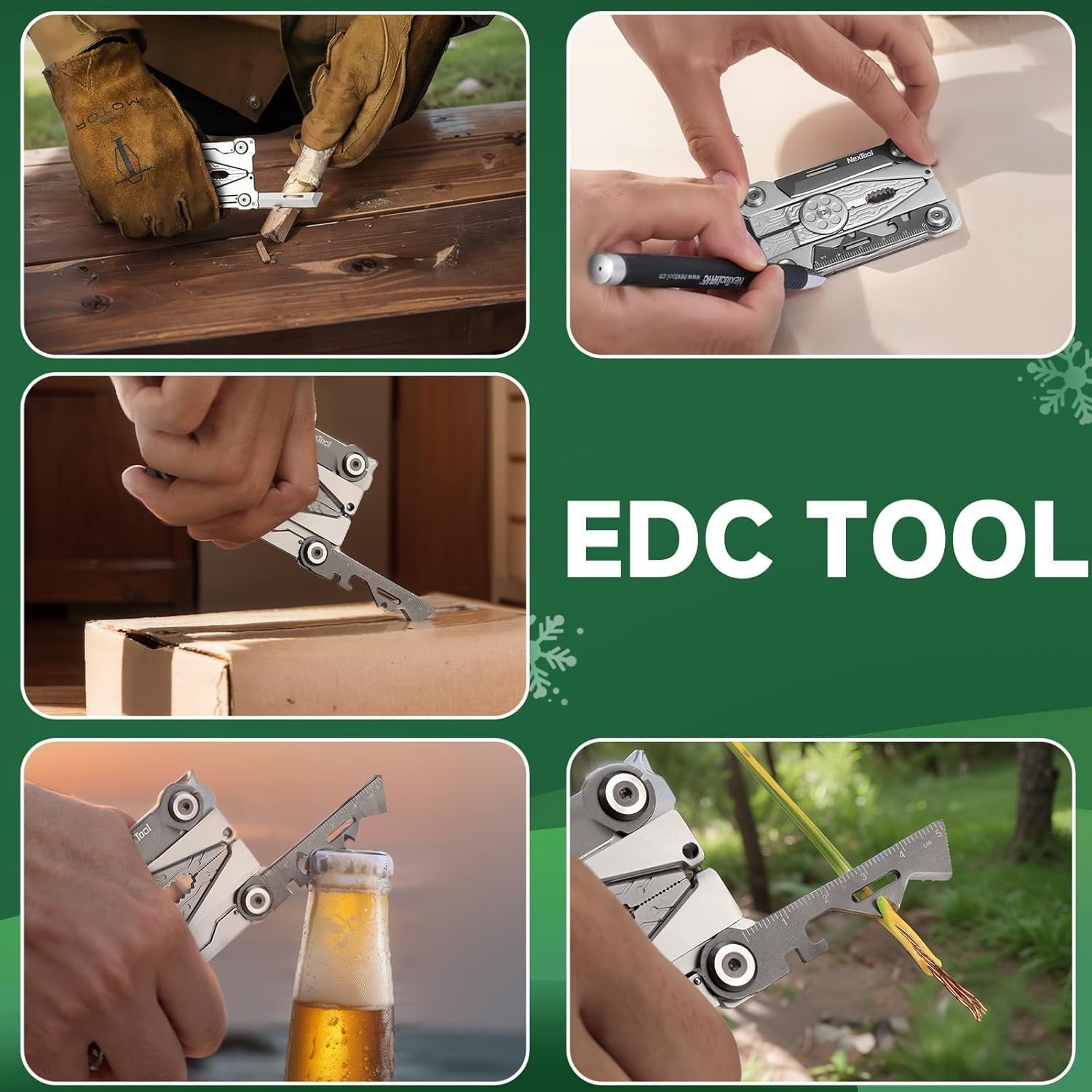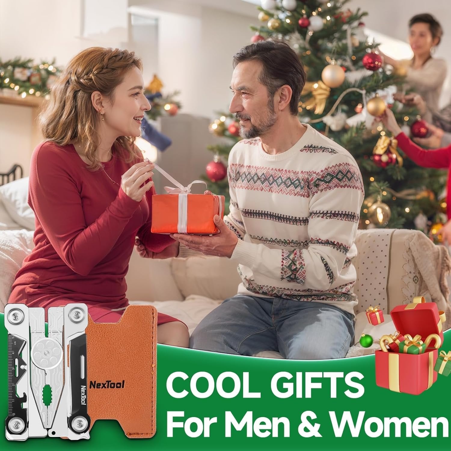 21 in 1 wallet multitool, credit card size tool - This credit-card-sized multitool combines 20 essential tools in one portable package. It includes needle-nose pliers, regular pliers, wire cutters, cord clamp, knife, flathead and cross screwdrivers, box opener, bottle opener, six hex wrenches (3mm to 8mm), wire stripper, ruler, wiper, spoke wrench, and hand rope hole. Perfect for quick fixes during outdoor adventures, camping trips, or everyday use Ultra-Portable Wallet-Friendly Design - With dimensions matching a standard credit card (85x52x7mm) and weighing only 91 grams, this tool easily fits in your wallet or pocket. The ergonomic folding pliers provide comfortable grip and control. Comes with a premium textured leather case that protects both your tools and wallet from scratches Durable High-Quality Construction - Crafted from premium 420J2 steel with titanium plating and fine sandblasting finish, this multitool offers excellent durability and corrosion resistance. The circuit board texture adds a sleek, technical appearance while maintaining a lightweight profile that's easy to carry daily Ideal Gift for EDC Enthusiasts - This innovative multitool makes a perfect practical gift for men and women who appreciate functional gadgets. Excellent choice for birthdays, Father's Day, weddings, or Christmas presents. Particularly suited for hikers, campers, scouts, DIYers, and anyone who values preparedness and compact tools Satisfaction Guaranteed - NexTool stands behind this product with reliable customer support. We offer hassle-free replacements or refunds if you're not completely satisfied. Our customer service team is always available to assist with any questions about your multitool purchase