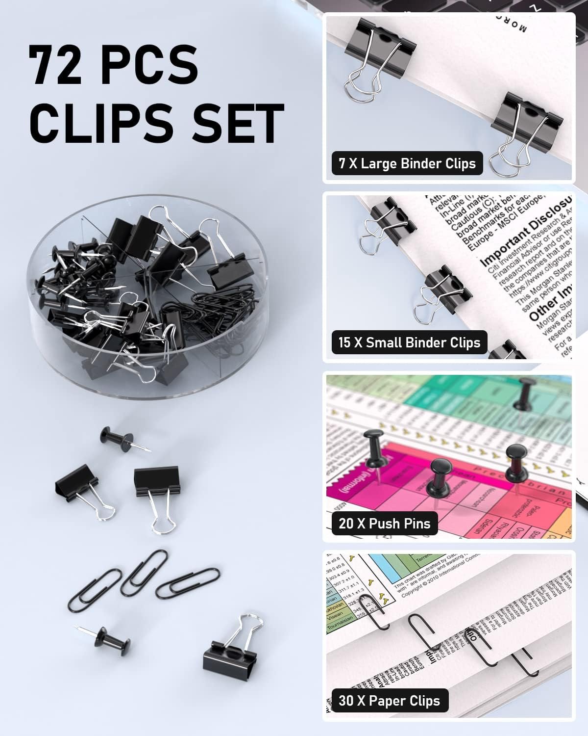 【Desk Organizers Set】: The desk organizations with 7 compartments (6 parts + 1 sliding drawer)-Drawer at the bottom for storing small products, 1 pen holder, 1 pcs black mesh business card holders, 72 desktop accessories for sorting and storing (7pcs large binder clips + 15pcs small binder clips+ 20pcs push pins + 30pcs paper clips) 【Reduces Clutter】: This desk organizers is perfect to keep your desk supplies organized and save space and time for you. Keep things tidy, easily find anything you need. Also ideal for organizing makeups and small household items. 【Embedded Base】:The base drawer of Desk Organizers adopts a concave and convex grid inlaid design to prevent smoothness & false protrusion. If you want to pull out the drawer, try gently lifting the base and pulling it to slide it in and out easily. 【No Assembly Required】 : This office desk caddy can be used out of the box. No assembly. Dimensions: 9.69 x 5.63 x 5.63inches, it is suitable for people with small workspaces students, teacher and kids. 【Durable Metal Material】The desk storage is made of durable steel wire, powder-coat finish in sleek black for a professional appearance, ideal for office, home, school, and more.