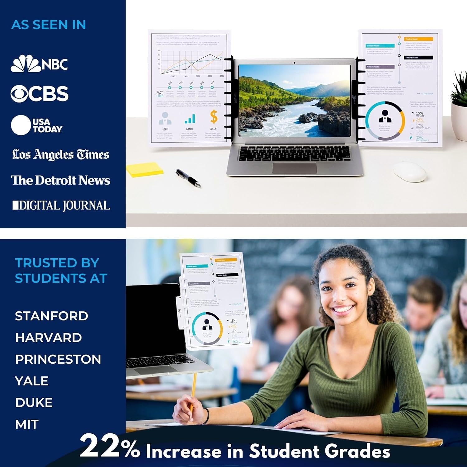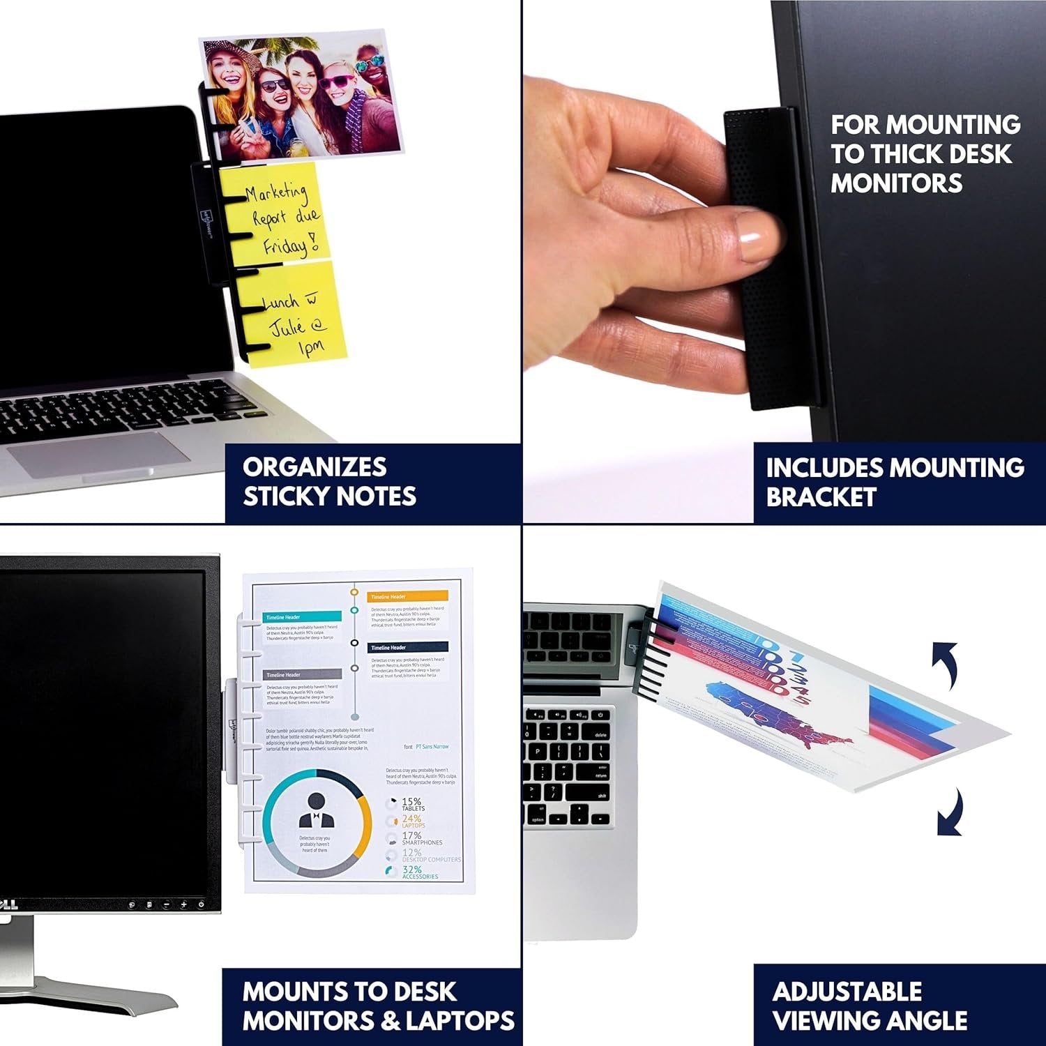 Note Tower Monitor Document Paper Holder for Typing | Clips to Laptops & Desktop Monitors I Reduces Eye & Neck Strain | Portable Copy Holder for Desk | Sticky Note Stand & Monitor Memo Board | White