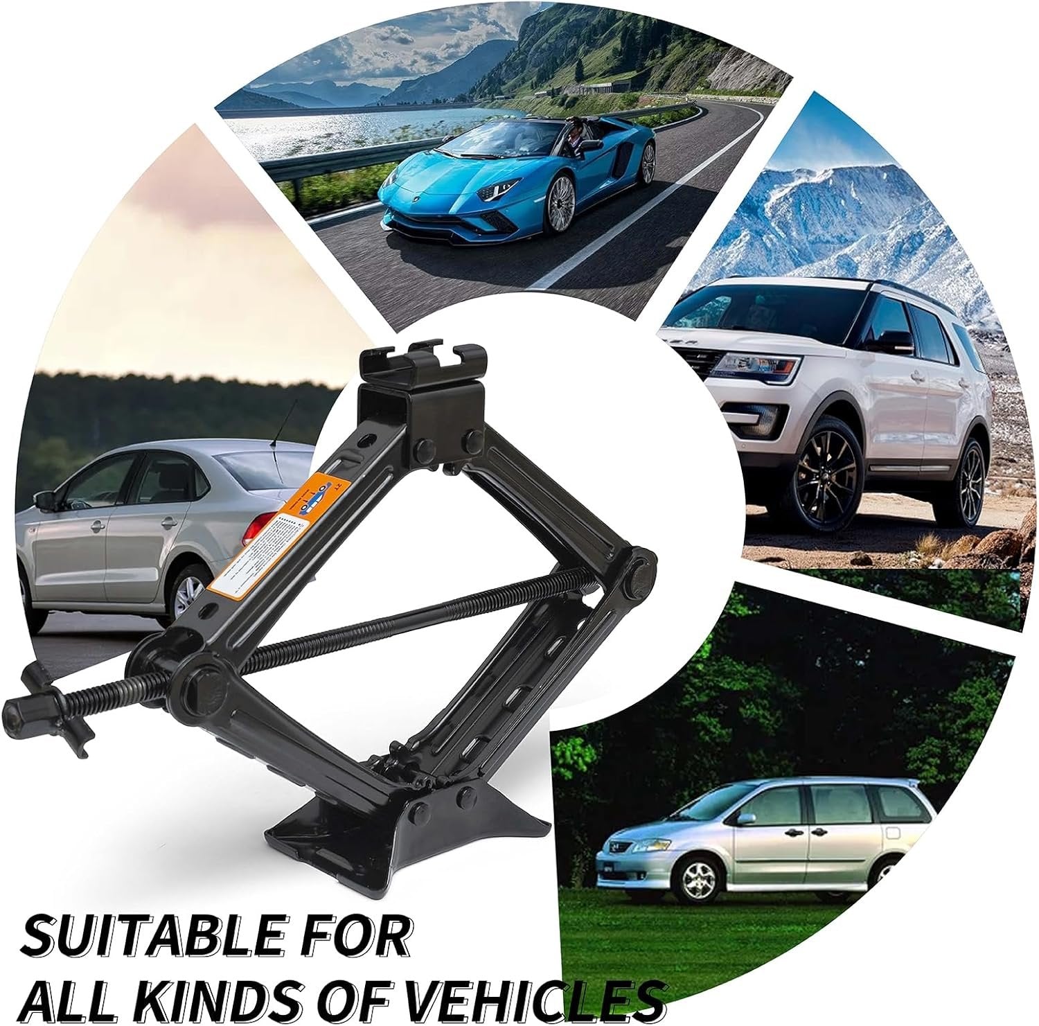【High-Capacity Jack for All Vehicles】Lift your car with confidence. This heavy-duty scissor jack supports up to 2 Tons (4409 lbs) and offers a lifting range from 4.33” to 16.93”, making it ideal for low-clearance sedans and higher-body SUVs or MPVs. A reliable solution for any roadside emergency or garage repair. 【Complete Tire Kit】Includes scissor jack, ratchet wrench, dual-size lug wrench (17/19mm & 21/23mm), gloves, tire gauge, and storage bag. 【Heavy-Duty & Durable】Made from reinforced cold-rolled steel and finished with a rust-resistant coating, this jack set is built for strength, durability, and long-term performance—even in harsh weather. Whether it’s rain, snow, or heat, this kit won’t let you down. 【Quick & Easy to Use】Forget the struggle. The bi-directional scissor jack design makes lifting your vehicle smooth and efficient—requiring up to 90% less effort than traditional models. Combined with a comfortable-grip ratchet and lug wrench, you can change tires quickly and without strain. 【Compact & Universal Fit】Fits most vehicles and stores easily in your trunk—ideal for roadside emergencies or garage use.