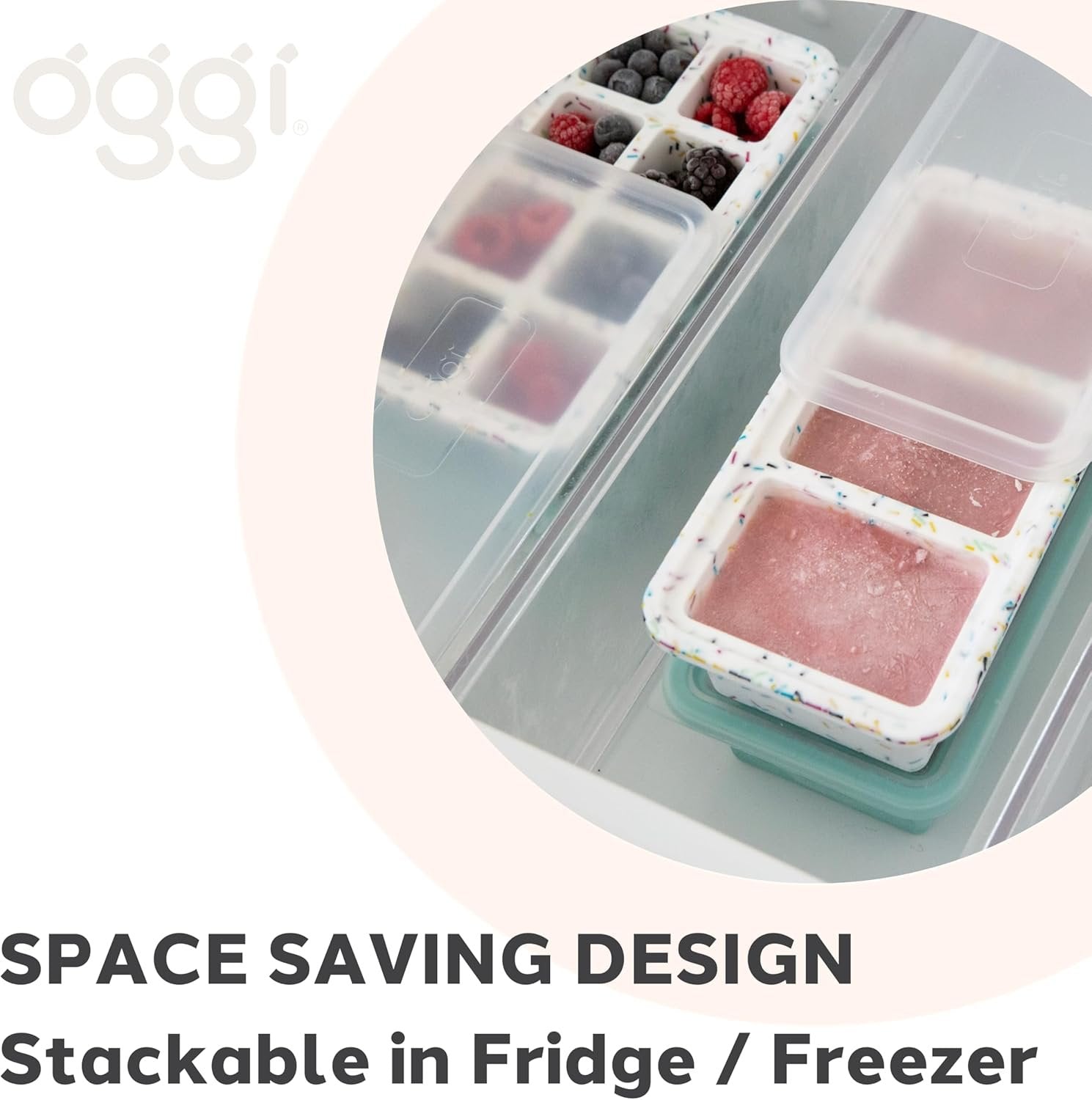 SPACE-SAVING EFFICIENCY: Maximize your freezer space with Oggi's Prep & Portion silicone freezer trays with lids. Designed to stack neatly, these trays are perfect for organizing your freezer and keeping your meal prep tidy and accessible.