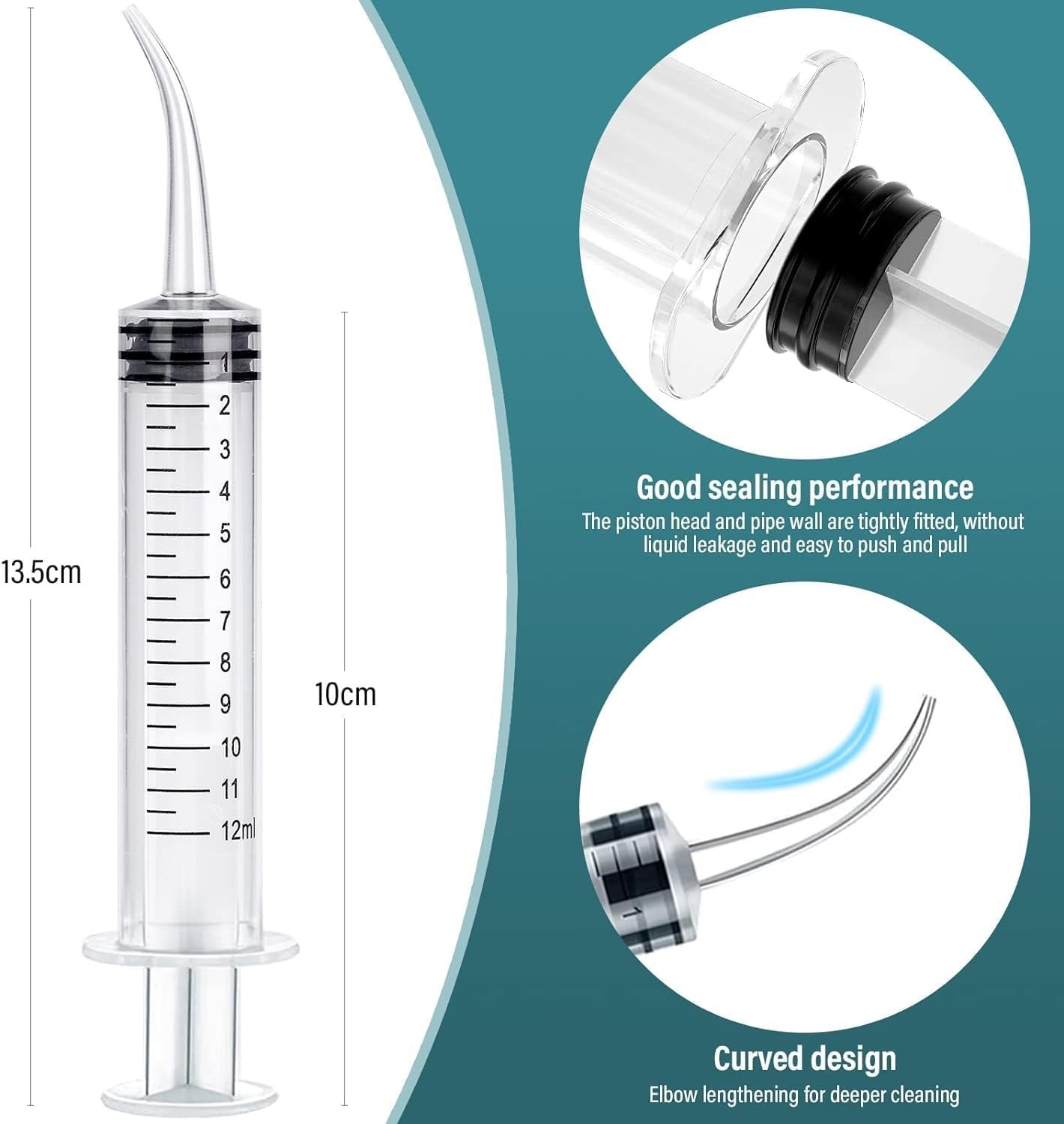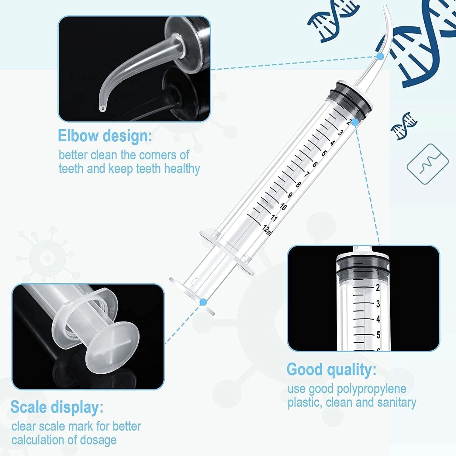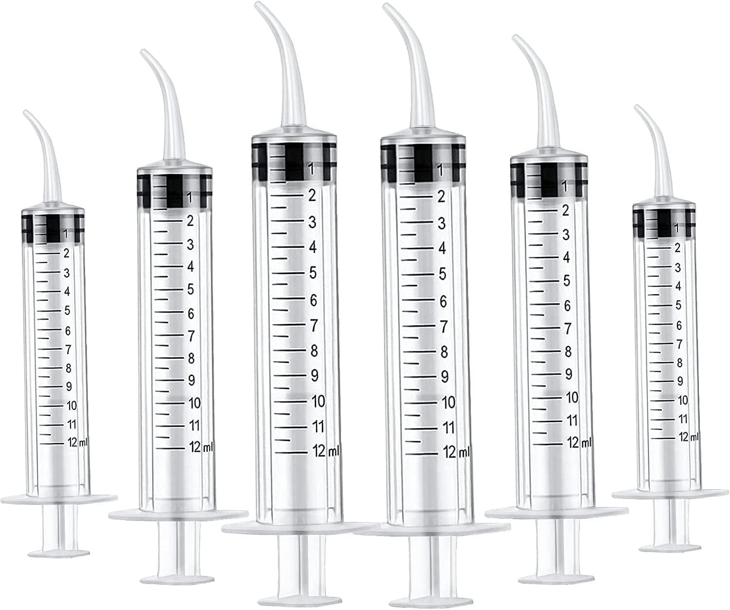 OLCANA 6 Pieces 12ml Plastic Syringe with Sterile Individual Wrap Disposable Curved Tip Syringes for Feeding Pets, Measuring Liquids, Oil Fluid Suction, Watering Industrial Experiments