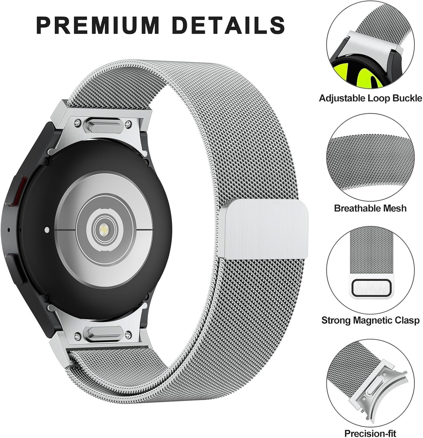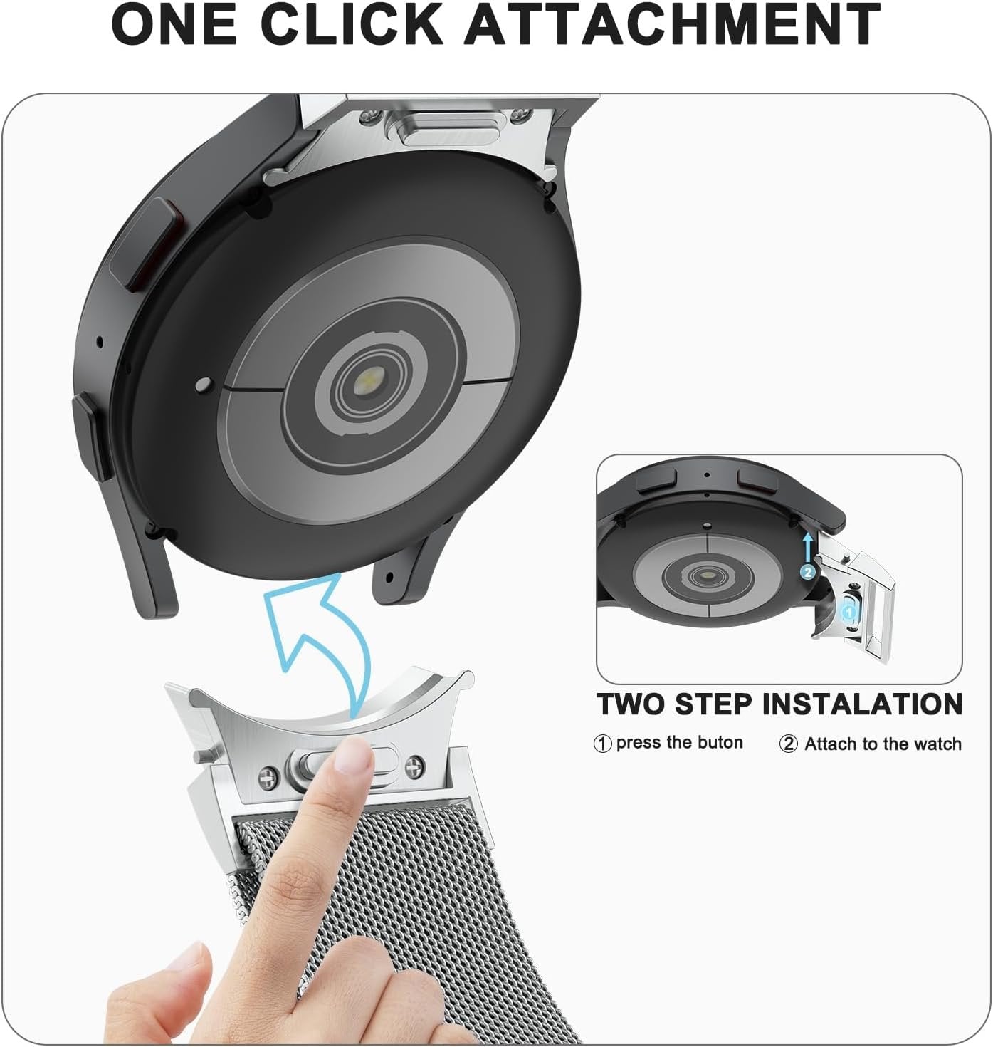 One Click No Gap Band for Samsung Galaxy Watch 7/6/5/4 Band 40mm 44m/Galaxy Watch 6 Classic Bands 43mm/47mm, Galaxy Watch 5 Pro Band 45mm, GalaxyWatch 4 Classic 42mm 46mm, Metal Band for Galaxy Watch 7/6/5/4/FE Band Women Men