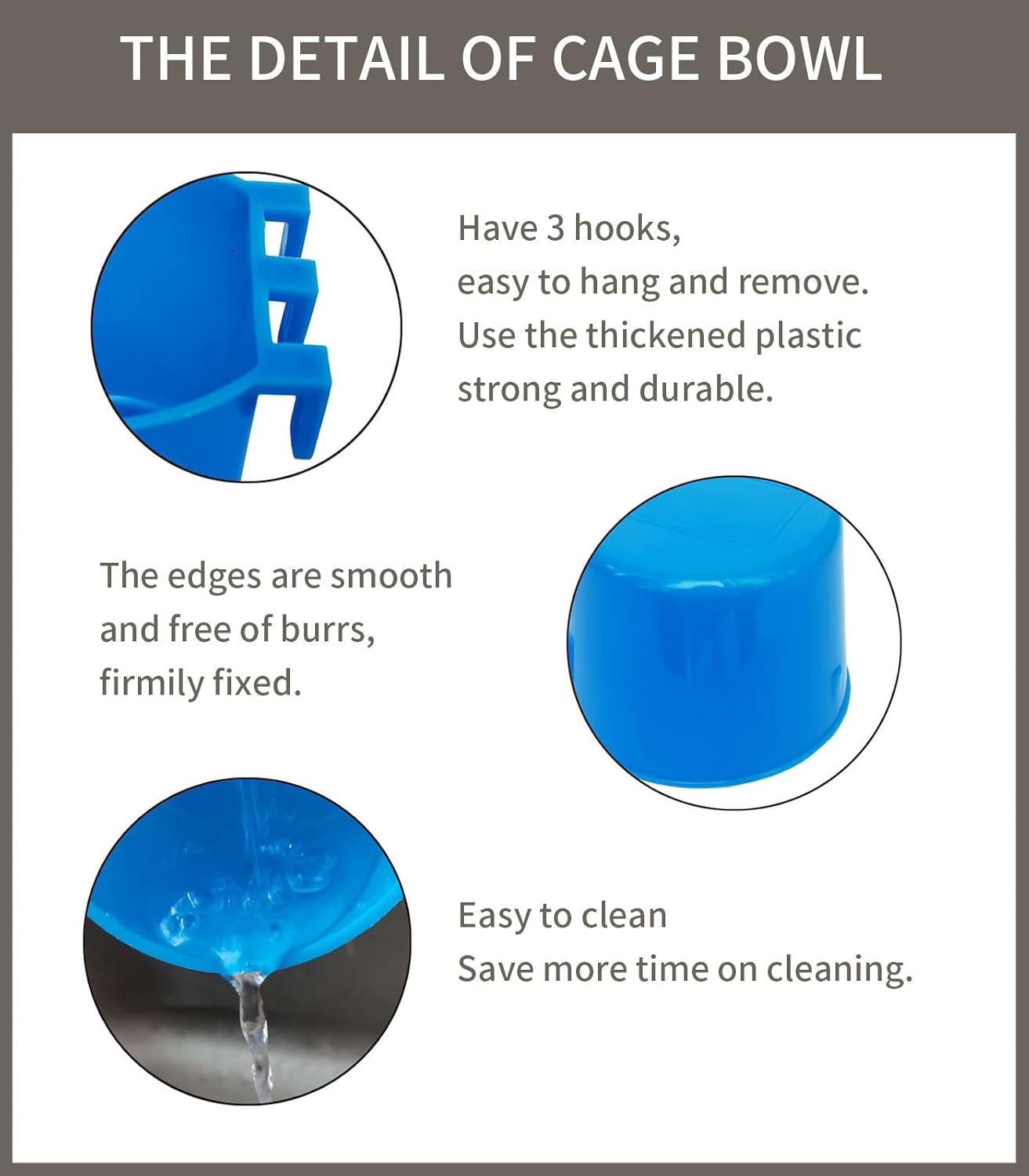ORIBUKI 40 Pack Cage Cups Birds Feeders Seed Bowl Chicken Feeding Watering Dish Rabbit Water Food Hanging Wire Cages Box 8oz Coop Cups for Pet Parrot Parakeet Gamefowl Poultry Pigeon (Blue)