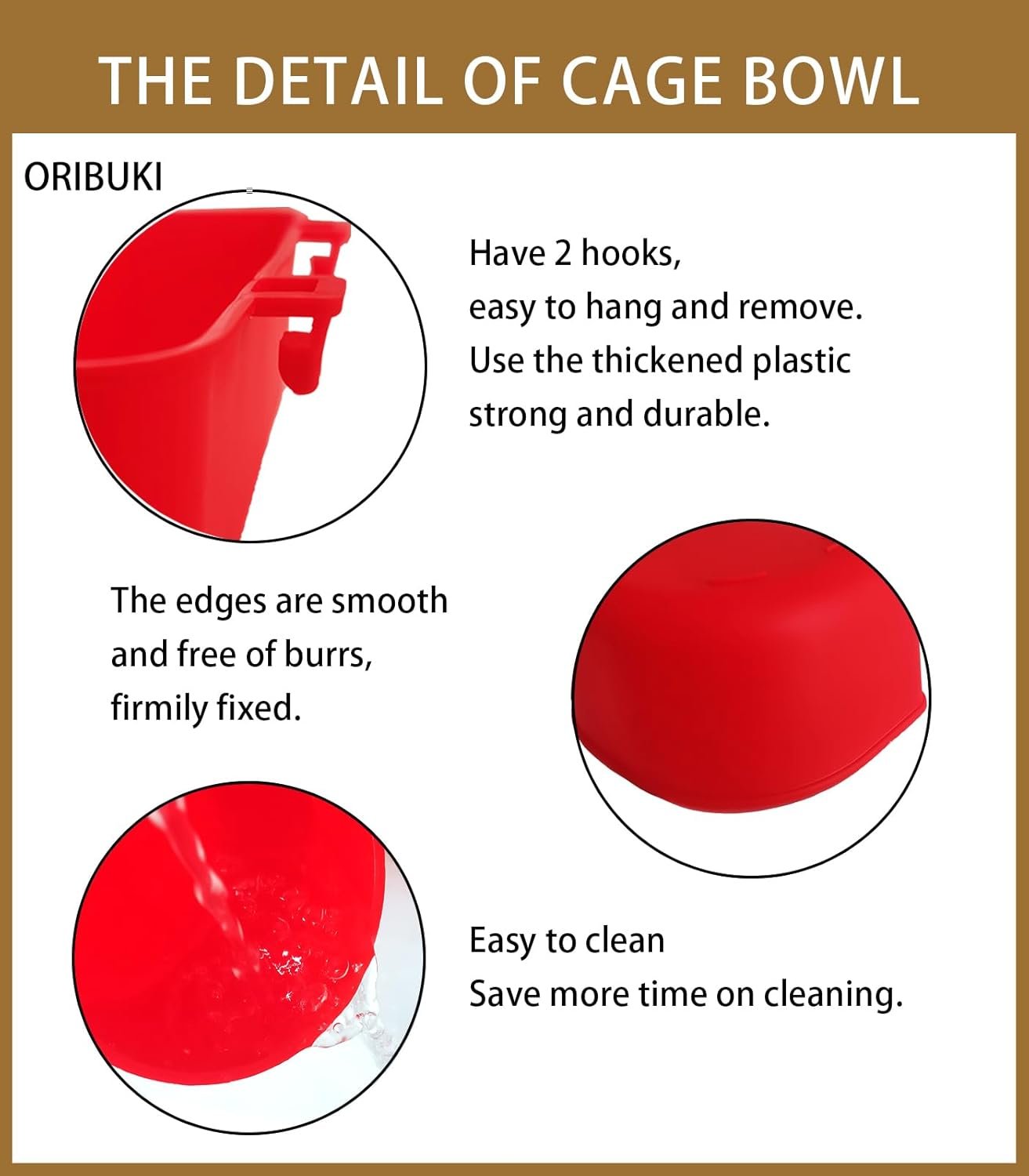 ORIBUKI 5 Pack Cage Cups Chicken Birds Feeder Water Bowl 25 OZ Rabbit Feeding Watering Dish for Travel Carrier Cat Puppy Food Dispenser Hanging Wire Cages Treats Box Seed Drinking Coop Cup Birdbath