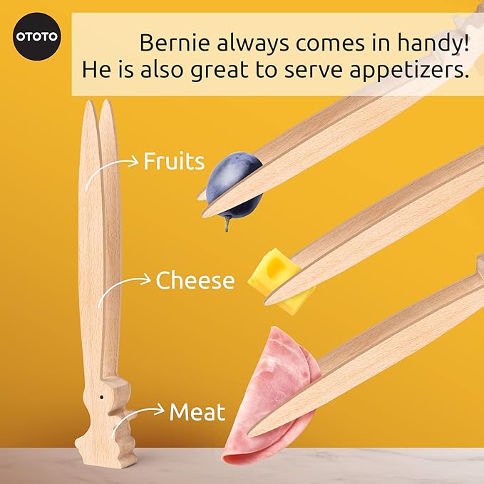 OTOTO Bernie Bunny Toaster Tongs - Rabbit Toast Tongs, Wooden Tongs for Toaster, Wooden Toaster Tongs - Multipurpose Mini Tongs for Appetizers, Wood Utensils & Cute Kitchen Gadgets