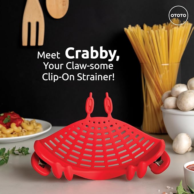 OTOTO Crabby Clip-On Strainer by - Red Crab Pasta Strainer, Noodle Strainer, Cute Kitchen Accessories, Cool Kitchen Gadgets, Food Strainer for Meat