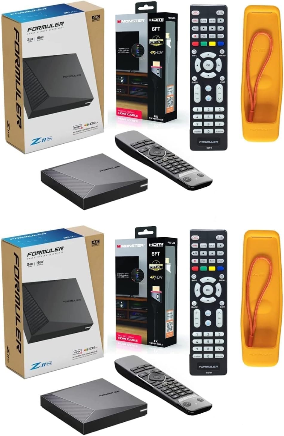 Pack of 2 Formuler Z11 Pro 4K Android 11 2GB Ram 16GB Storage with Premium IR1 Remote | Bonus Monster HDMI Cable| Bonus Formuler Luminous Remote| Bonus Silicone Remote Case| Bonus Phone Stand