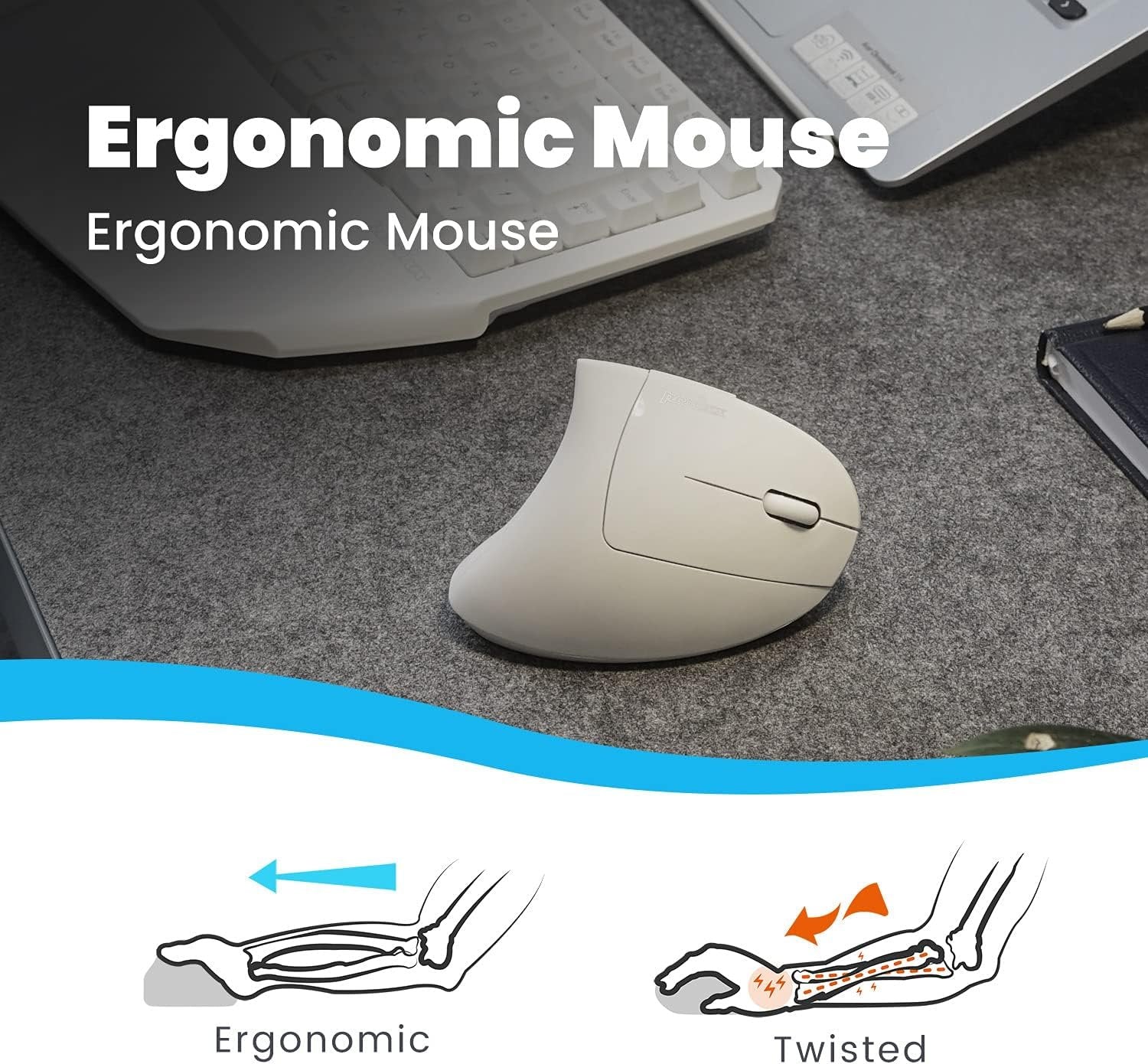 Perixx PERIMICE-713W Ergonomic Vertical Wireless Mouse - Adjustable DPI, 6-Button Design, Long-Range Connectivity, Right-Handed Use, White