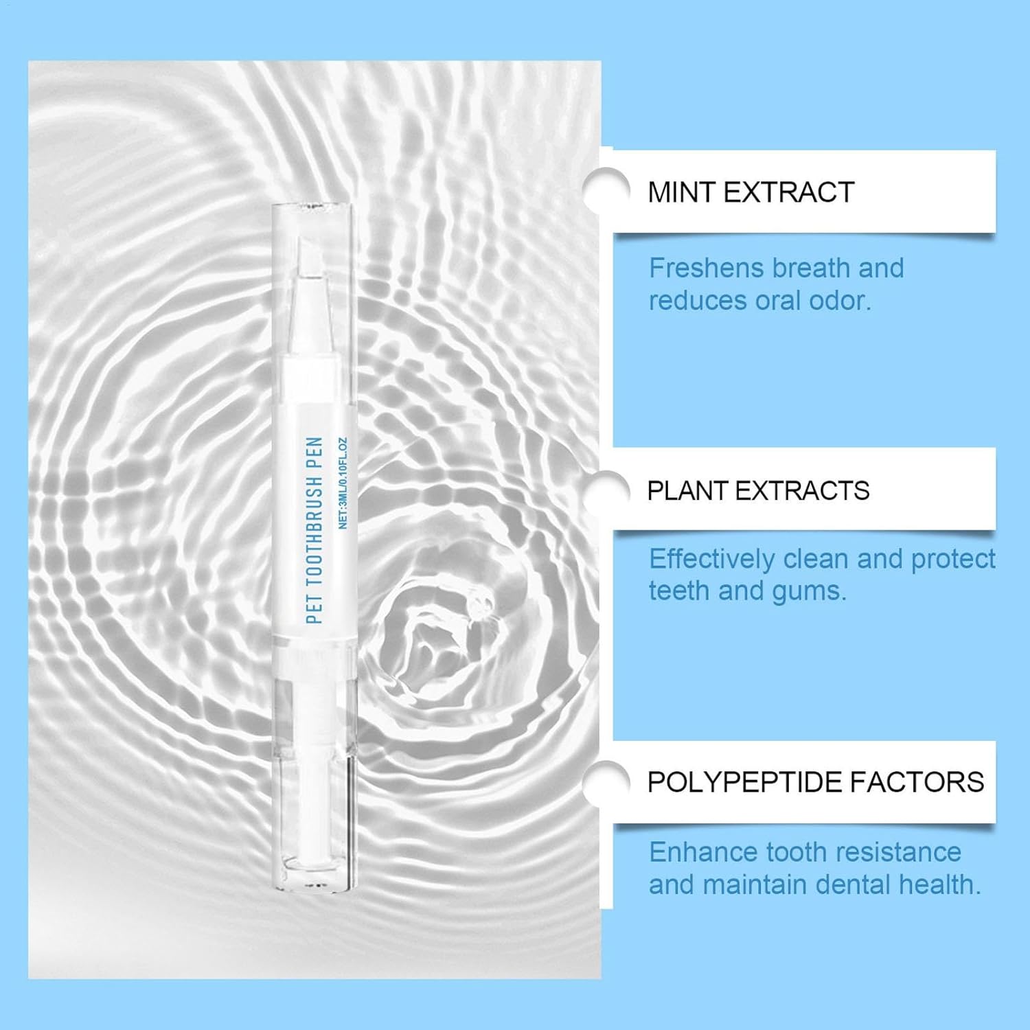 Designed with an ergonomic handle for a comfortable grip, this toothbrush pen allows for easy maneuvering, ensuring a no stress brushing experience for both you and your pet, even in hard-to-reach areas Compact and portable, this toothbrush pen is ideal for use at home or on the go, making it perfect for pet owners who need a convenient and effective way to care for their pet's teeth during travel or at home This refreshing oral care tool is suitable for pets of all ages and sizes, from puppies to adult dogs and cats, making it an part of your pet’s regular grooming routine to healthy teeth and gums The Toothbrush Pen is easy to clean and maintain, designed for durable use, ensuring it a reliable tool in your pet care kit for long-term oral health support with minimal hassle