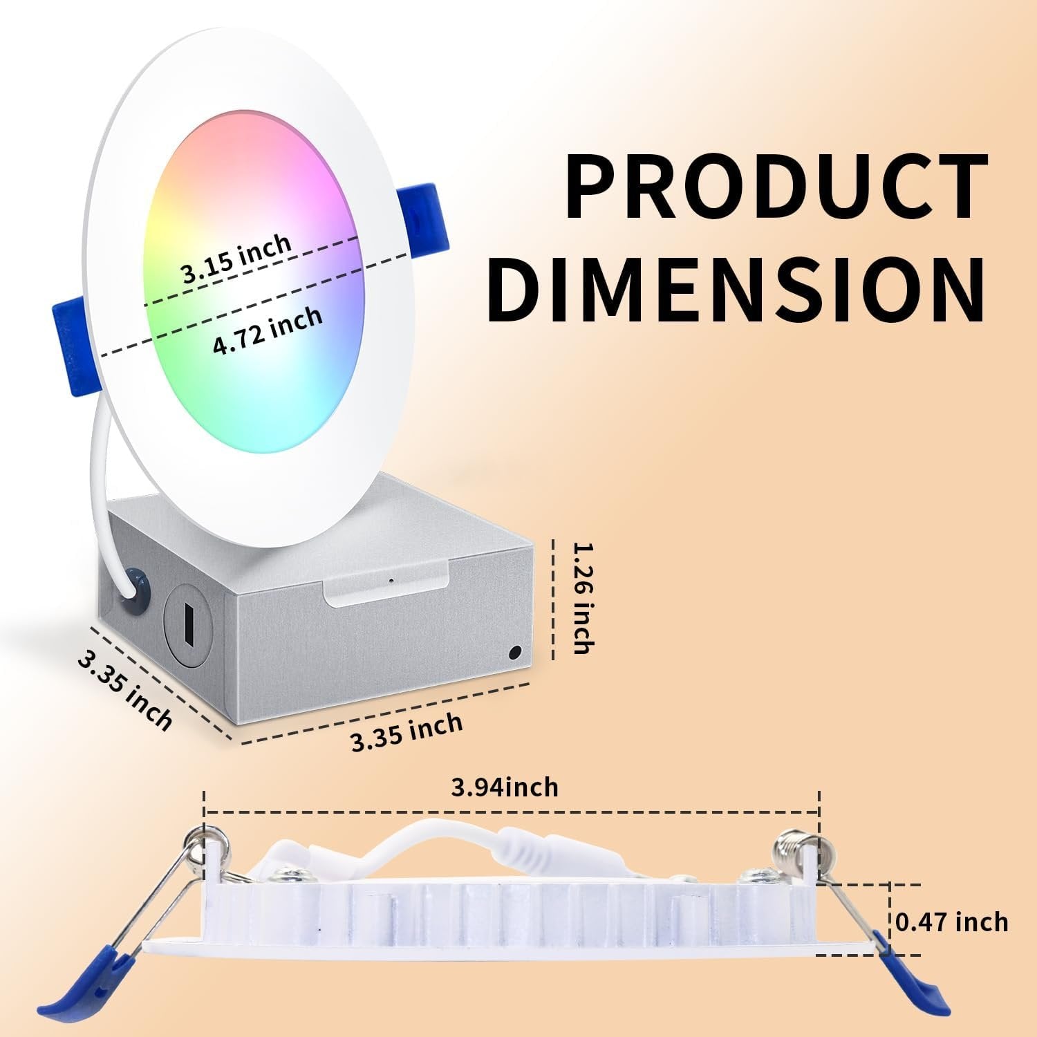 RGB and CW Parameter - 10W(800Lumens), 80w equivalent. Peteme smart Pot light supports Warm white & Cool white from 2700K to 6500K. You can use the APP to adjust different colors according to different scenes or different needs, nearly 16 million colors in total. Voice Control and Sync to Music - For Alexa and Google Assistant. Use simple dialogue to control the Downlight and release your hands. You can control the moment of light by sound. Timer, Schedule & Group Setting - Group all the soffit lights together and control at the same time so that you can seperatly control the lights of bedroom, living room, etc. Set schedule or timer on smart recessed lighting to turn on/off automatically, in groups or individually. APP Intelligent Control - 1.Download the APP named Smart Life. 2.Select automatic search, connect to the hub. 3.The hub will automatically search for downlights and then select the connection. The led Ceiling lights for Alexa can be controlled remotely. (*2.4GHz Wi-Fi only.) IC Rated & Easy Install - The Canless LED recessed light is IC rated,allowing contact with the insulation layer in the ceiling, which means that the junction box is thermally protected. This Recessed lighting has energy star certification, ETL, ISED, FCC certification and other relevant safety certification.