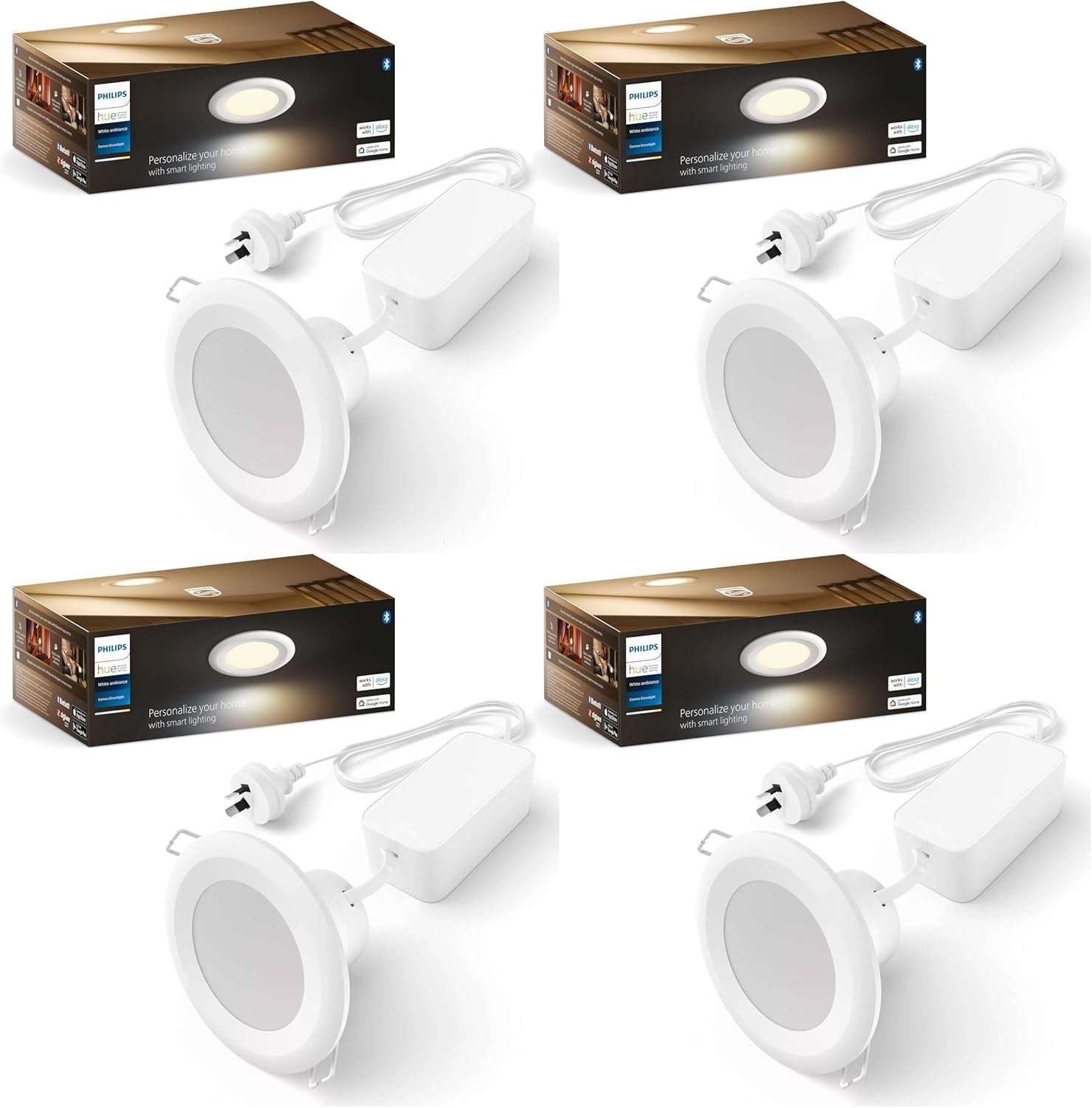 Philips Hue White Ambiance Smart Downlight 90mm V2 (4-Pack) 800 Lumens – Energy-Efficient LED Downlights, Dimmable, Compatible with Hue Bridge, Alexa, and Google Assistant