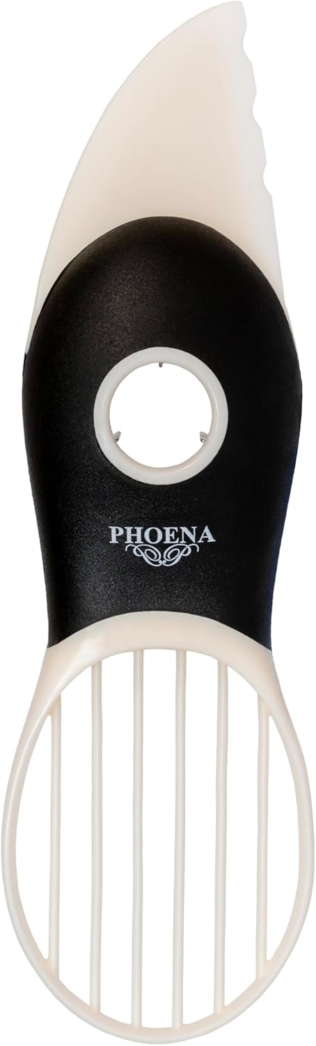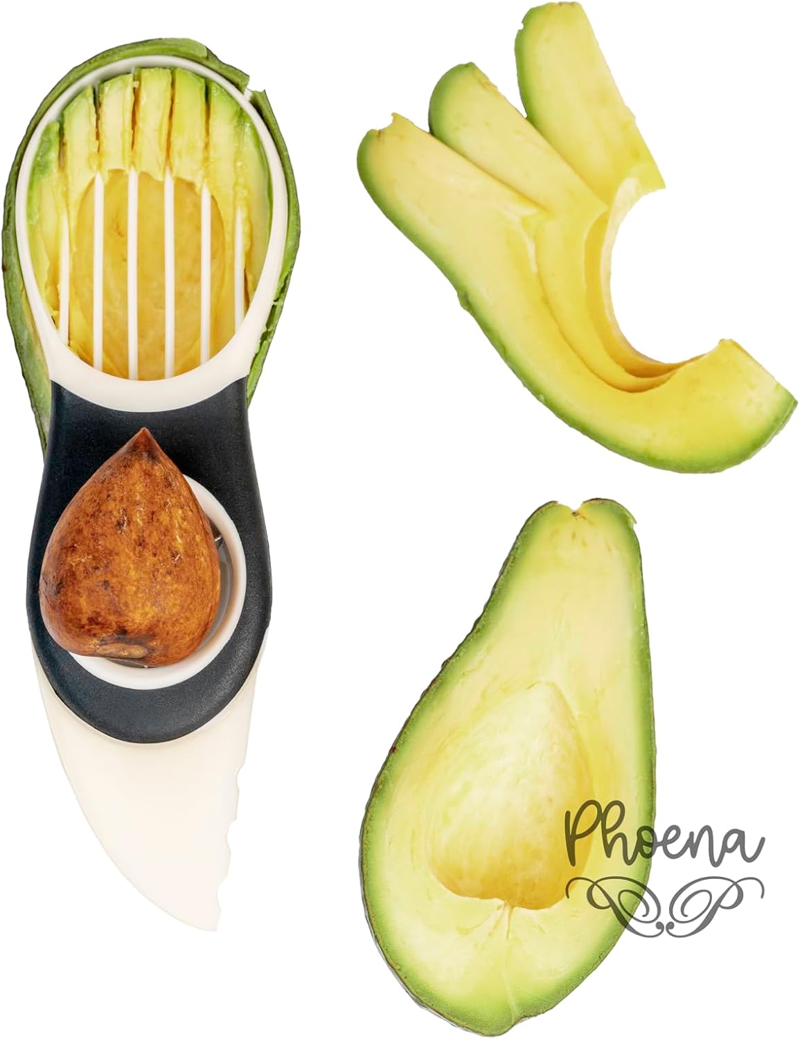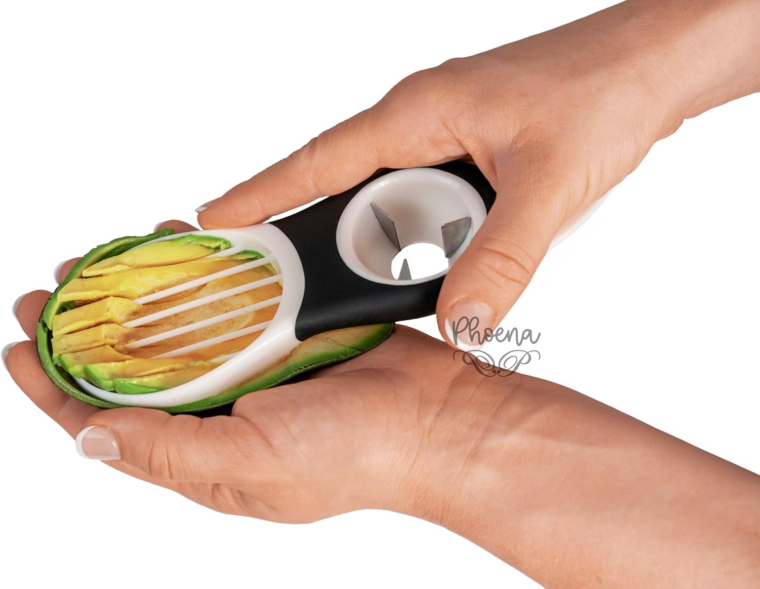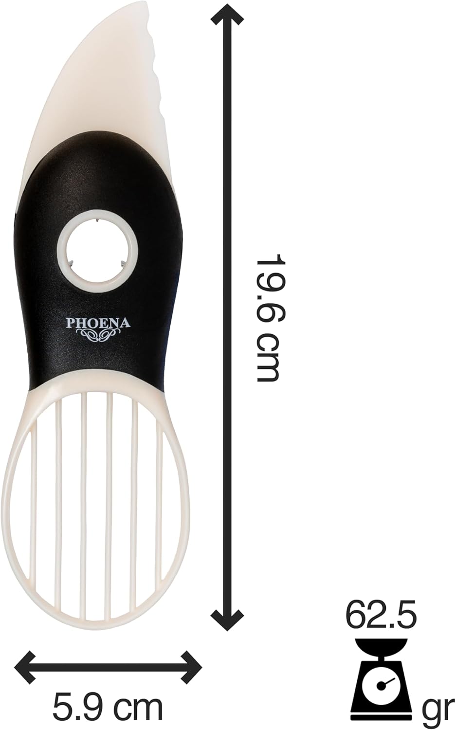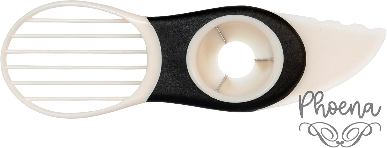 PHOENA Avocado Tool Fruit Slicer Pitter 3 in 1 White & Black Kitchen Gadget Tool Comfortable to Grip Core Remover Food Safe Fruit & Vegetable