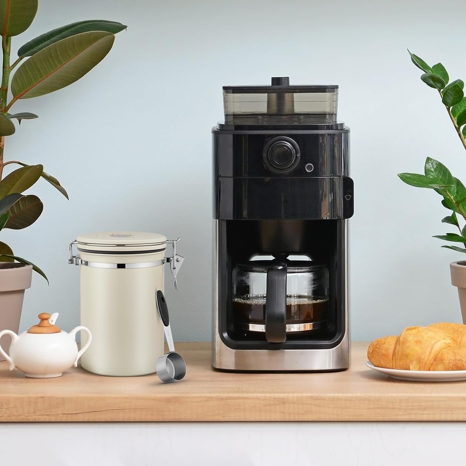 Pitmoly Airtight Coffee Canister with CO2 Valve,2.8L Food Storage Container, 32OZ Stainless Steel Coffee Storage Jar with Date Tracker and Measuring Scoop for Coffee Beans, Grounds, Sugar and Flour