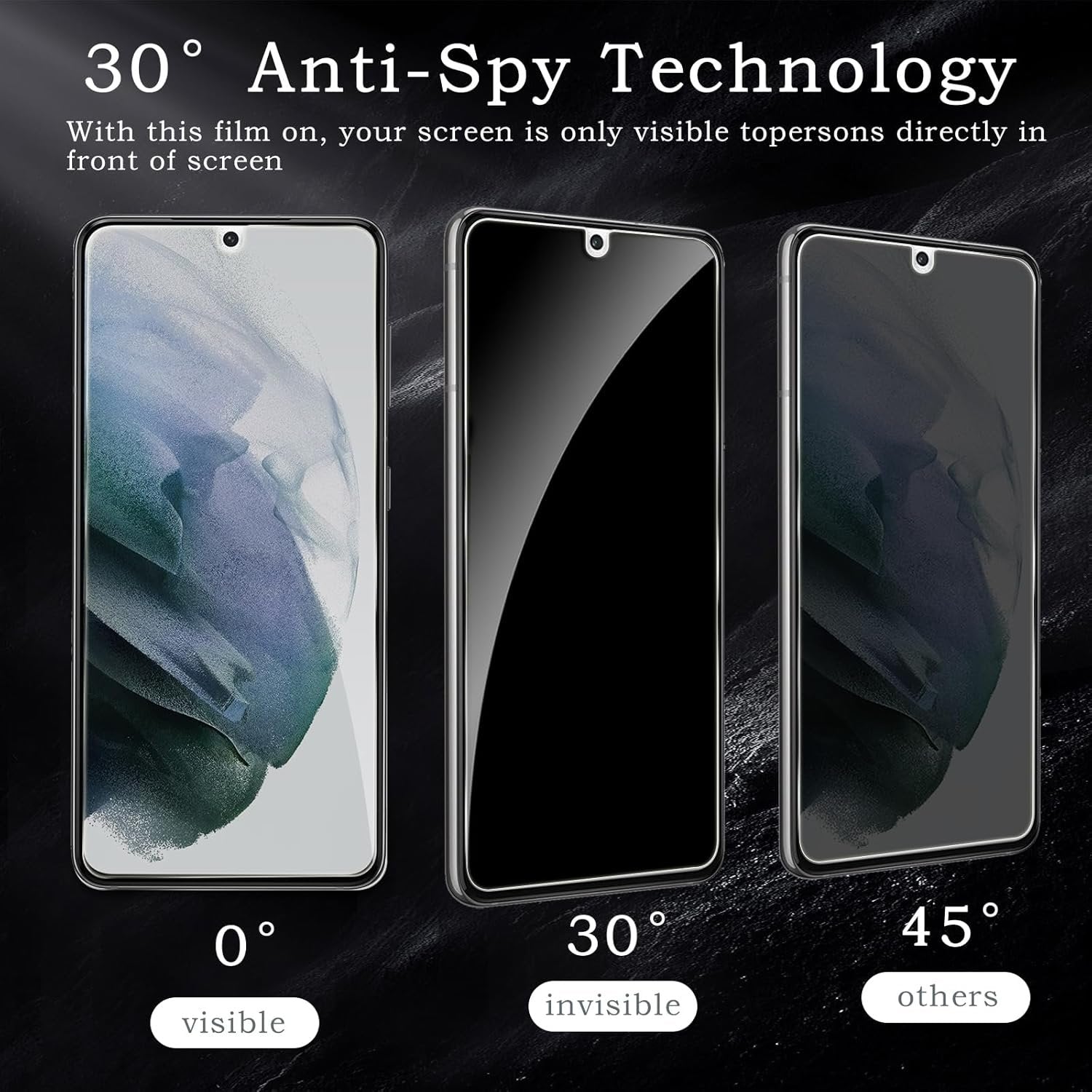 【Designed for Samsung Galaxy S21】- This Privacy tempered glass screen protector is specially designed for Samsung Galaxy S21, include 2 Pack privacy screen protector, perfectly fits your screen and offers great protection to your iPhone. 【Anti-Spy Tempered Glass】- Give your iPhone better protection, choose high-quality materials to produce good screen protectors. Choose the most appropriate color depth for the anti-peep coating, while satisfying privacy and visual comfort. Hides your private and sensitive information from strangers in public places. 【Shatterproof Scratch Resistant】- With 9H hardness tempered glass, protecting your iPhone's screen from daily wear and tears like accidental scratches, small falls, and bumps. This privacy glass screen protector is coated with a Hydrophobic and oleophobic clear layer making it anti-fingerprint and smudges. 【case Friendly】- This screen protector designed to be-Suitable with most cases. Extra slight space around the bezel allows your case To wrap around the edge of your device without any Interference. 【Warranty】- If you accidentally order the wrong size, fail at installation, or encounter any other issues, feel free to let us know. (FREE Replacement, and no fees required.)
