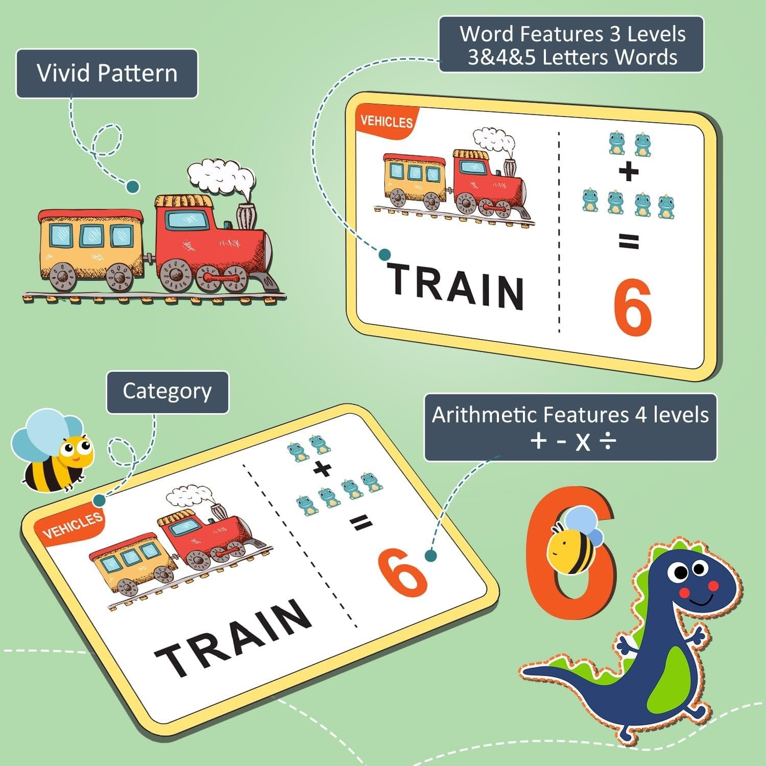 Early Education Toy: Unicorns balance letter toys is a combination of preschool children's educational toys, it can cultivate children's hands-on ability, spelling ability, thinking ability, improve children's cognition of mathematics and letters, and exercise children's memory. Unicorns Balance Game: Pick a card, cover up the answer from the card, let the child calculate the answer, put the three-dimensional number of the answer and the corresponding number of small unicorns on both sides of the balance to maintain the balance of the balance.Interesting learning toys can easily attract children's attention, satisfy children's curiosity, and let children enjoy the fun of learning mathematics. Mathematics Arithmetic Learning: After cover the answers, children can use simple addition, subtraction, multiplication, and division to correctly place the card content into a formula and calculate the correct answer. Unique and interesting learning methods can stimulate children's creativity and imagination, improve logical thinking ability, enhance time concept, and help children develop positive learning habits. Spelling & Word Recognition: Children use cards to spell and place words correctly,small letters , making it easier for children to learn. The words on the card are divided into 3 levels of 3 letters, 4 letters and 5 letter words, allowing children to learn from simple to difficult. Children can learn about various animals, colors, food, body parts, and various daily necessities while playing games. Kids Learning Gift: Unicorns toy learning set includes: Unicorns balance*1, letter card slot*1, balance plate*2, three-dimensional number*10, little unicorns*19, letter*10, card*32, number symbol*25. Learning toys can be used as birthday gifts, party toys, holiday gifts and Christmas gifts. Children can experience the joy of learning in the game.