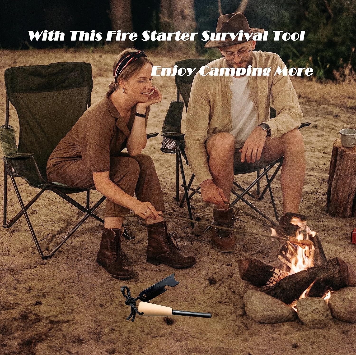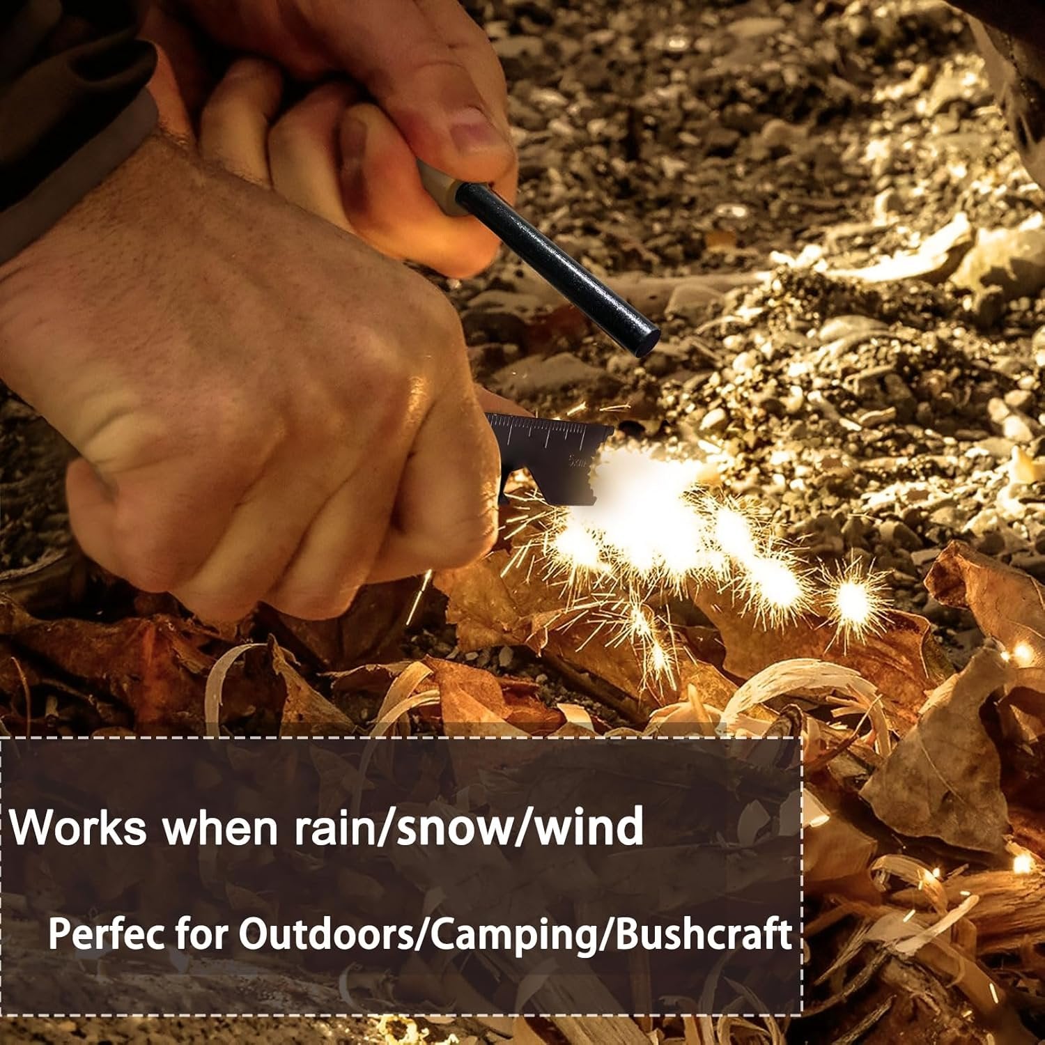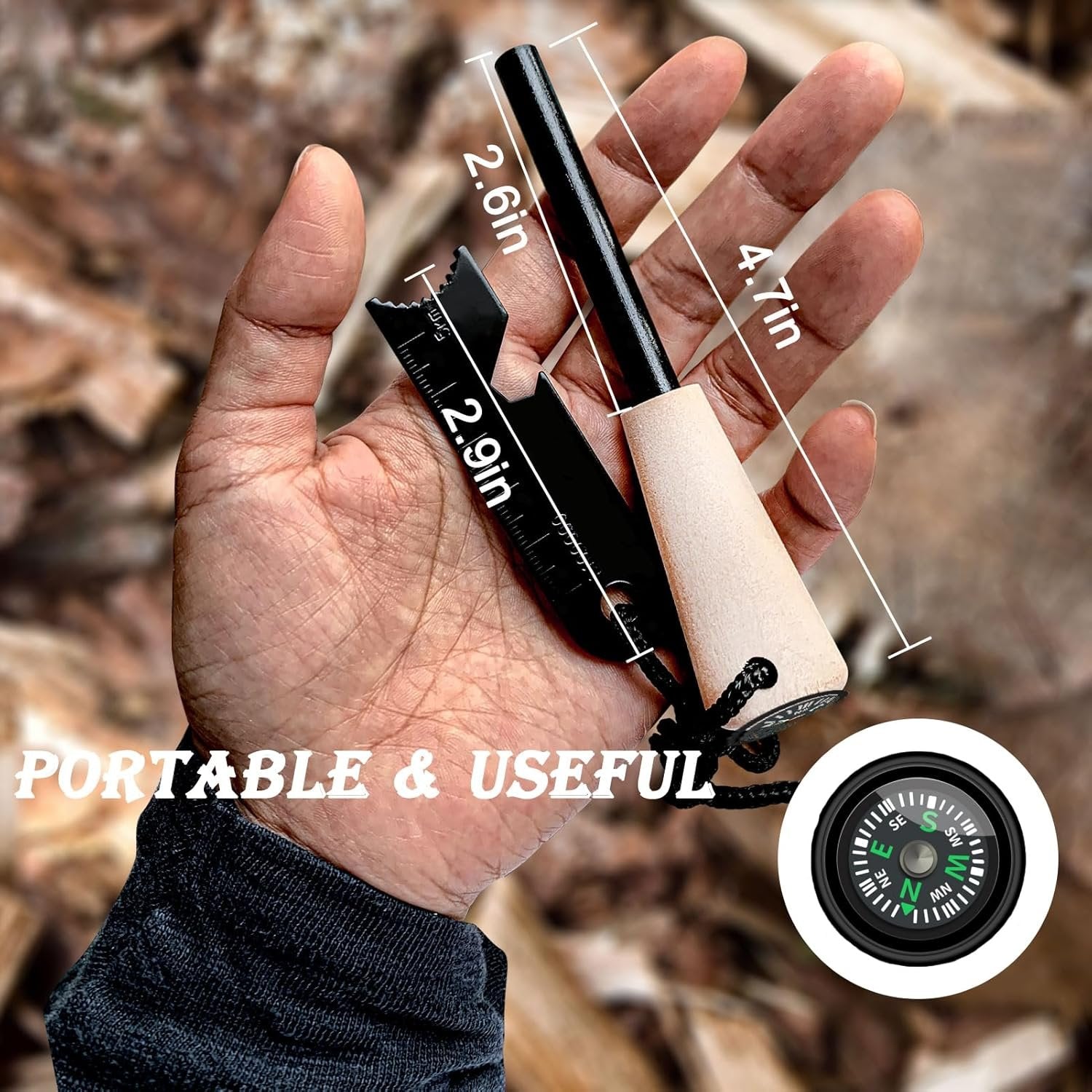 🔥This survival tool can be a fire starter,a compass,a bottle opener, hex wrench, micro ruler, map scale and sharp spine scraper. It is affixed to the ferro rod by the lanyard for quick easy retrieval and use.The large space of this 7inches (18cm) * 4.7inches (12cm) multi-layer wall bag, can contain mobile phones, wallets, medicines, pens, outdoor supplies, etc. 🔥Up to 5500°F Degrees sparks are hot enough to ignite a variety of tinder including plant fuzz, goldenrod fluff, and cattail seed or milkweed down. Stay warm and keep the wolves at-bay with this foolproof fire steel. 🔥Our fire starter handle is made of premium 100% hardwood to provide a natural textured grip. The flint and steel fire starter is made of a high-quality ferrocerium rod and magnesium with a black antioxidant coating blend that will last for over 16,000 strikes! Durable and long-lasting. 🔥This ferro rods striker ignites fire in any weather (even wet), and at any altitude. Perfect emergency fire starter for Bushcraft, Hiking, Hunting, Fishing, EDC, Emergency, BBQ, Gas Camp Stoves, etc 🔥You will get a fire starter tool with 4 wax infused tinder ropes. Also, we will send you extra hook. And with the hook, you can hang the bag at the waist, tie the bag to the arm, or directly hold the bag in your hand. It is a must for outdoor sports. If you meet any problems,feel free to contact us. We will give you a reply in 24 hours.Hope you enjoy shopping in our store.