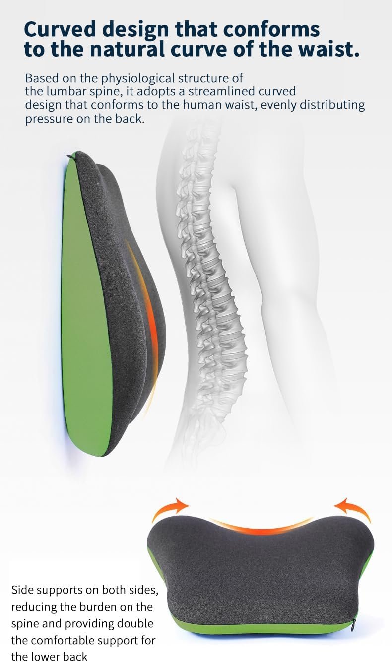 QUMOX Lumbar Support Pillow, Memory Foam Back Cushion Backrest for Car Seat, Office Chair, Computer Chair, Wheelchair and Recliner Ergonomic Design (Green)