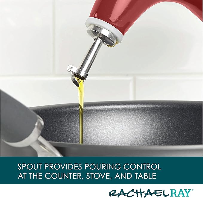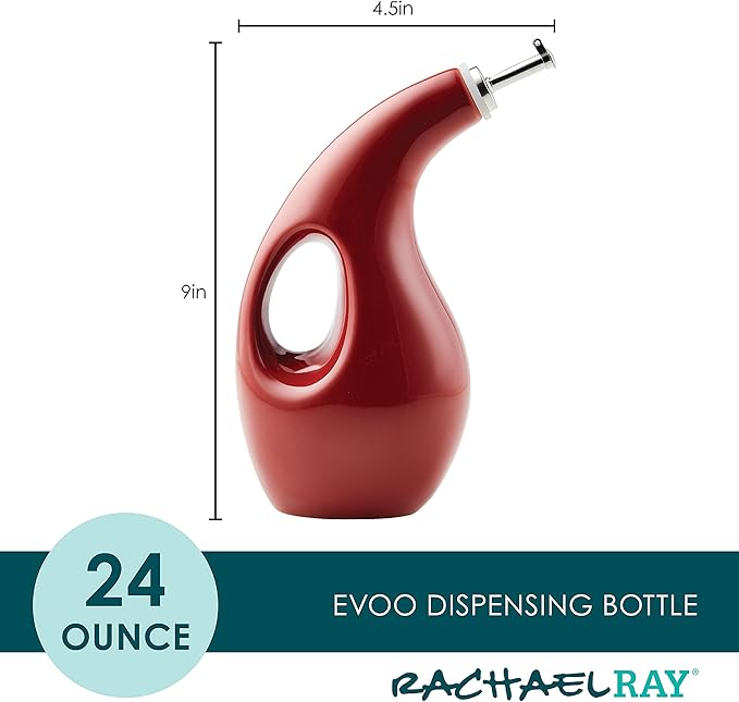 Rachael Ray Ceramic EVOO Oil and Vinegar Dispensing Bottle with Spout, 24 Ounce - Cranberry Red